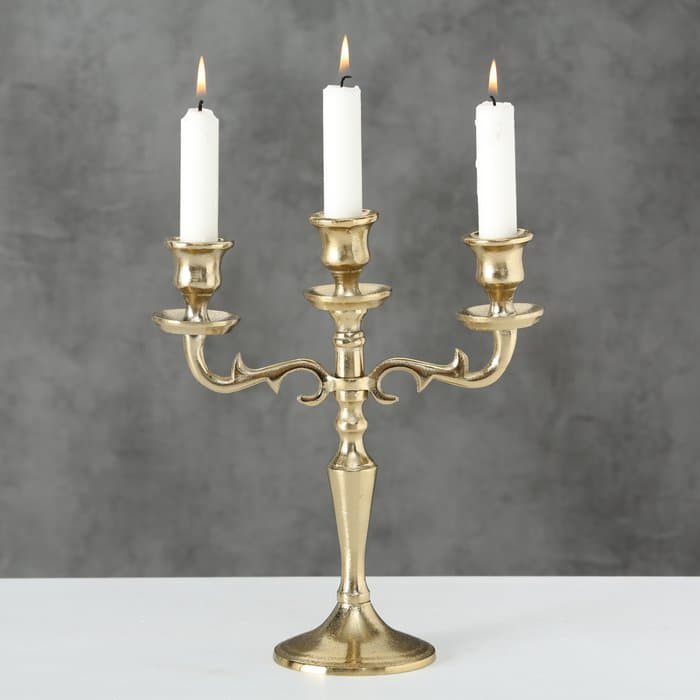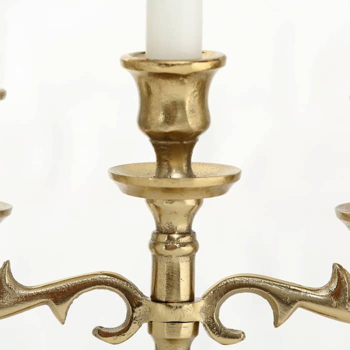 Kaarsenhouder Varas is een klassieke 3-armige kandelaar in de kleur goud. Hij is gemaakt van metaal en is 27 cm hoog. Hij heeft een voet van 10 cm breed en is daardoor zeer stabiel. De kandelaar moet je zelf nog in elkaar zetten, maar geen stress, er zit een handige handleiding bij!