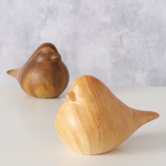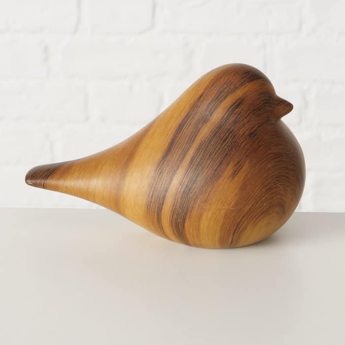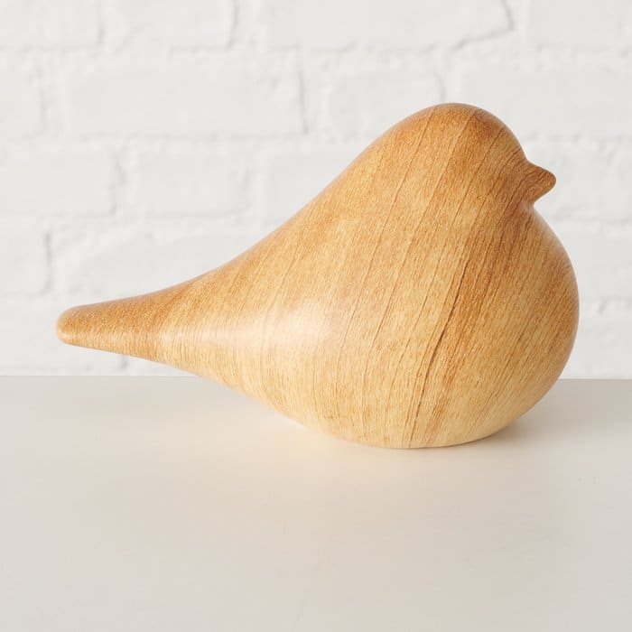 Boltze Vogel Beeldjes – Set van 2 – Keramiek in Houtlook – Stijlvolle Decoratie voor vogelLiefhebbers (16x9x10 cm)
