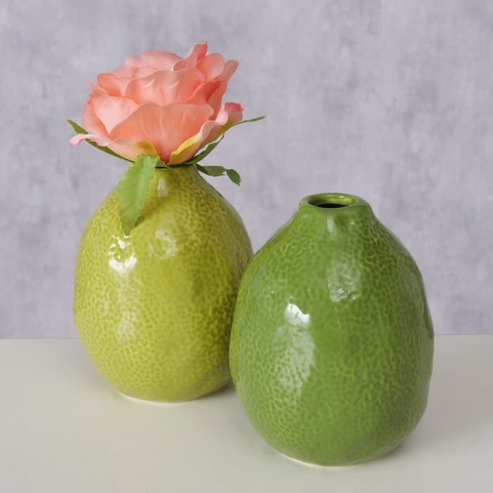 Breng een frisse en speelse touch in je interieur met deze set van 3 keramische vaasjes in de vorm van een citroen en limoen van het trendy merk Boltze! Met hun unieke ontwerp en levendige kleuren zijn deze vaasjes een echte eyecatcher in elke ruimte.