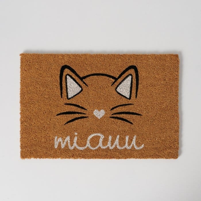 Maak een vrolijke eerste indruk met deze charmante katten deurmat ‘Miauw’ van Boltze. De mat is gemaakt van duurzame kokosvezels en heeft een schattig kattengezicht met glitteraccenten en de tekst miauw. Perfect voor kattenliefhebbers en iedereen die van speelse details houdt!