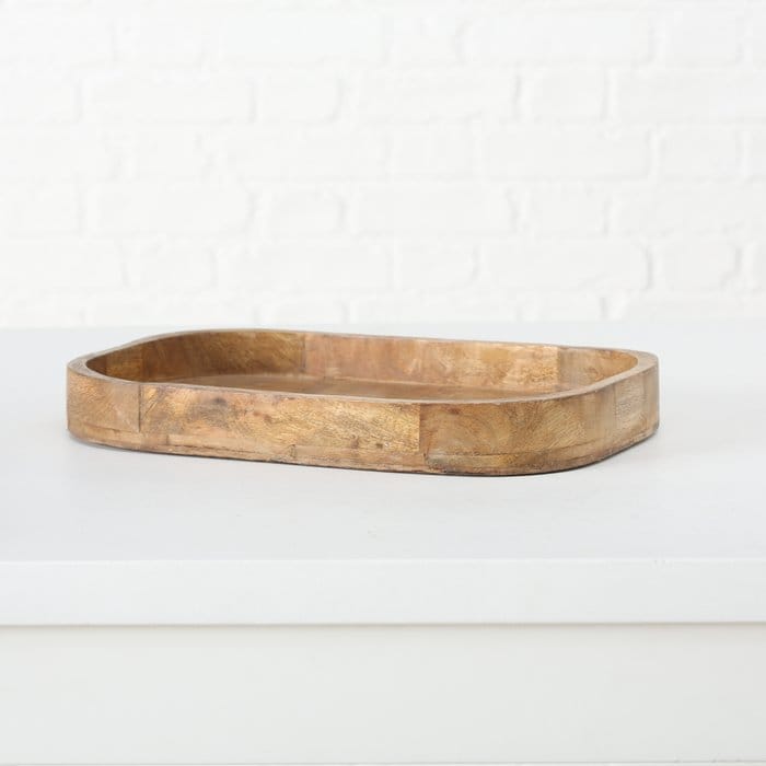 Breng warmte en natuurlijke charme in je interieur met de set van 2 decoratie dienbladen van Boltze. Deze prachtige trays zijn gemaakt van hoogwaardig mangohout, een duurzaam en trendy materiaal dat bekendstaat om zijn unieke nerfstructuur en robuuste uitstraling.