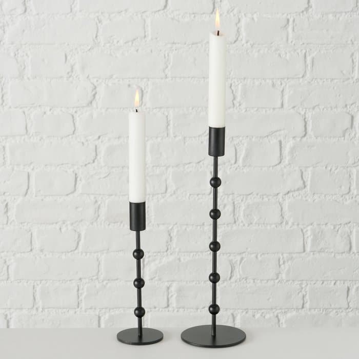 Breng sfeer en warmte in huis met deze stijlvolle set van 2 kaarsenhouders van Boltze. Gemaakt van hoogwaardig metaal en uitgevoerd in een elegante kleur zwart , zijn deze kaarsenhouders een perfecte aanvulling voor elk modern interieur. De verschillende hoogtes van 20 en 30 cm creëren een speels en dynamisch effect, waardoor je eenvoudig een gezellige en luxueuze ambiance kunt creëren.