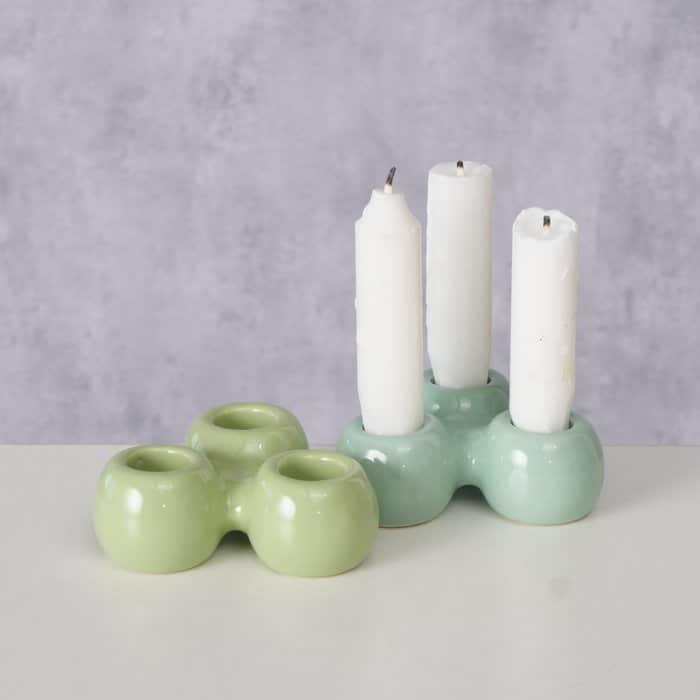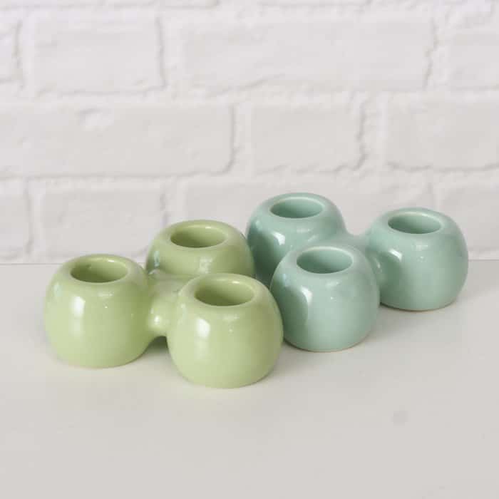 Boltze – Kaarsenhouders – Set van 2 – Groentinten – Keramiek