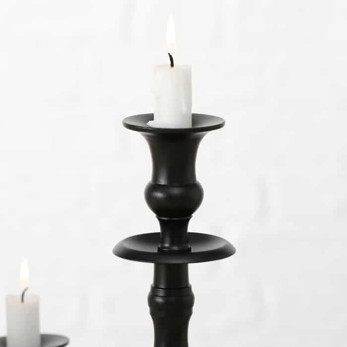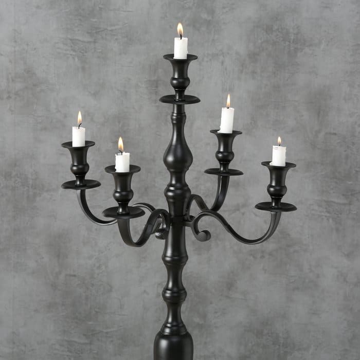 Kaarsenhouder Victoria is een klassieke 5-armige kandelaar de kleur zwart. Hij is gemaakt van metaal en is maar liefst 105 cm hoog. Het is hiermee een echte eyecatcher als kandelaar. Hij heeft een voet van 22 cm breed en is daardoor zeer stabiel. De kandelaar moet je zelf nog in elkaar zetten, maar geen stress, er zit een handige handleiding bij!