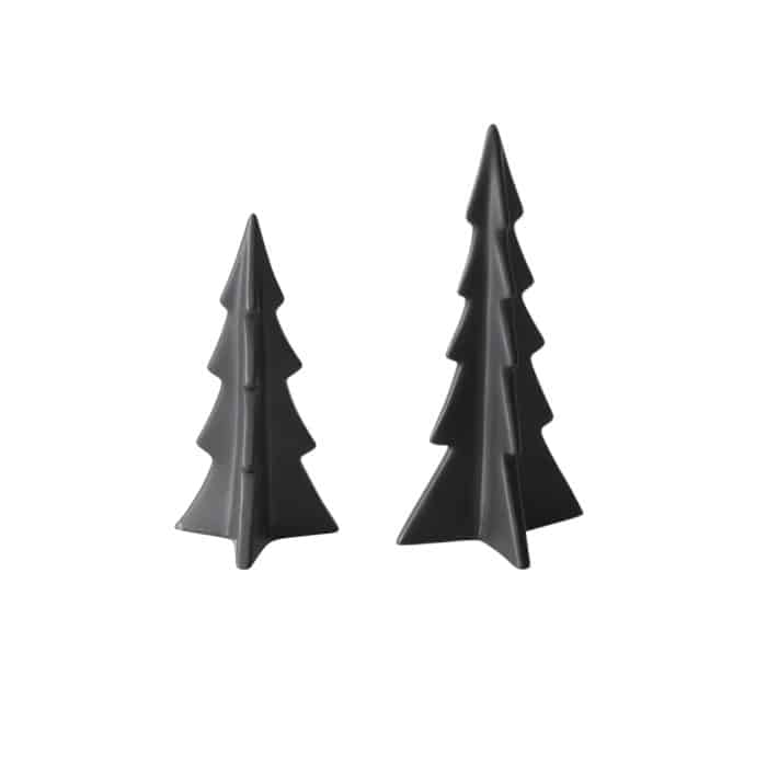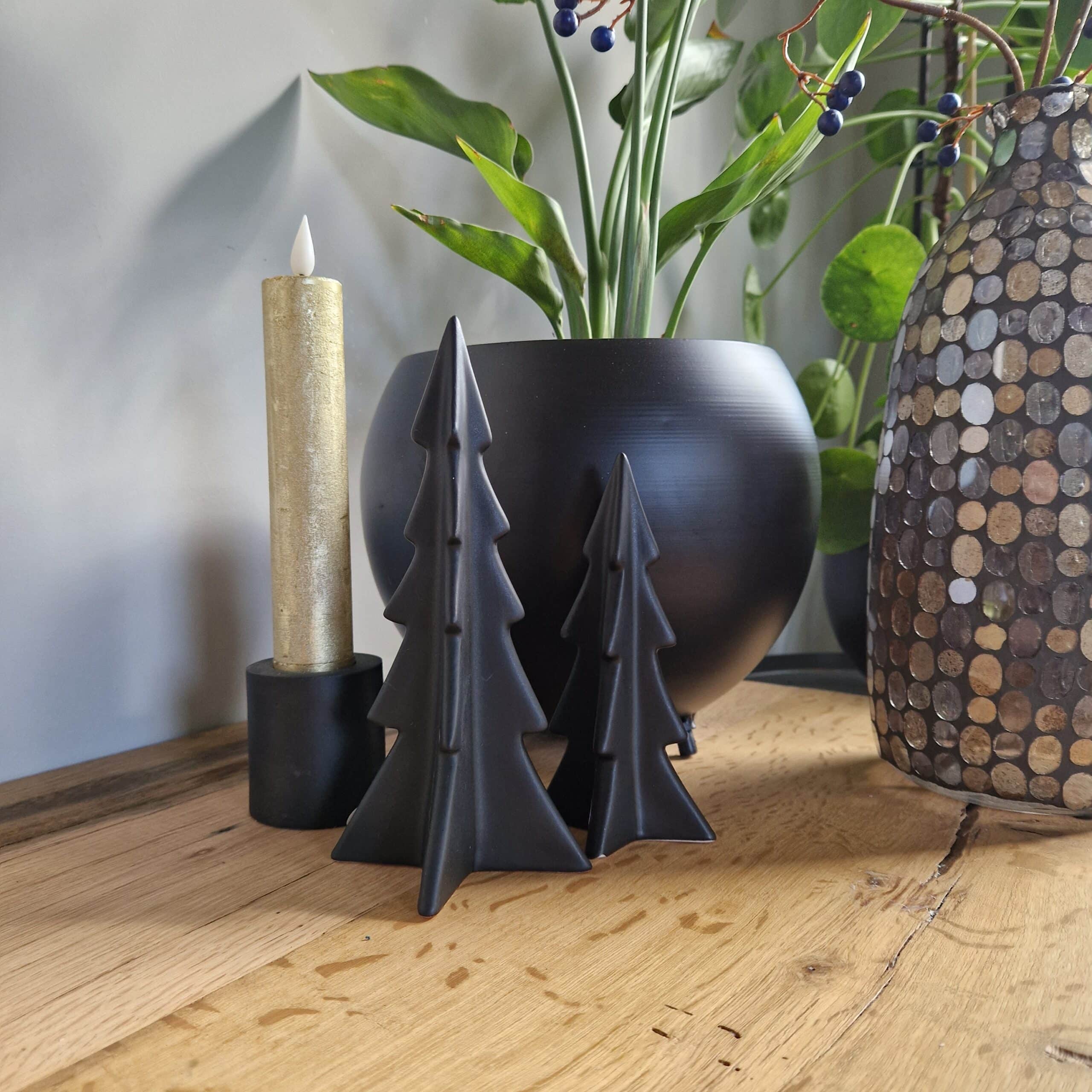 Breng sfeer in huis met deze stijlvolle set van 2 zwarte kerstbomen van het trendy merk Boltze. De decoratieve kerstbomen zijn gemaakt van hoogwaardig keramiek en hebben een moderne, strakke uitstraling. Met hoogtes van 16 en 20 cm zijn ze perfect om samen neer te zetten op een dressoir, vensterbank of feestelijk gedekte tafel.