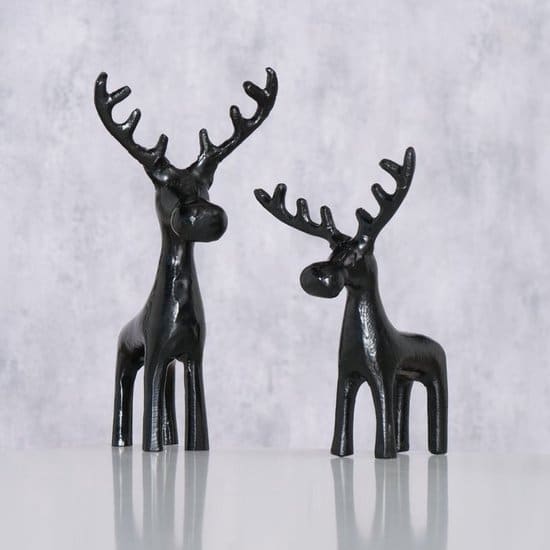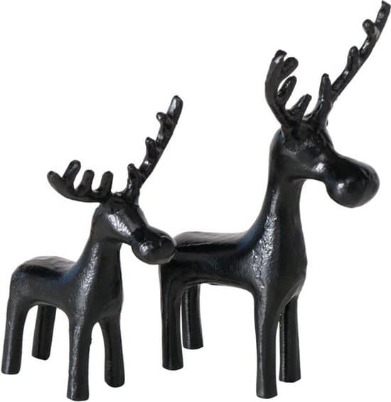 Vrolijke Set van 2 Elanden/Rendieren van Boltze – Handgemaakte Zwarte Metalen Decoratie