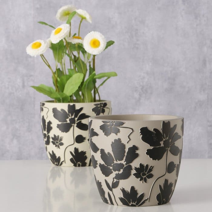 ✔ Trendy & uniek design – De zwarte bloemen met 2D-effect geven de potten een bijzondere uitstraling.