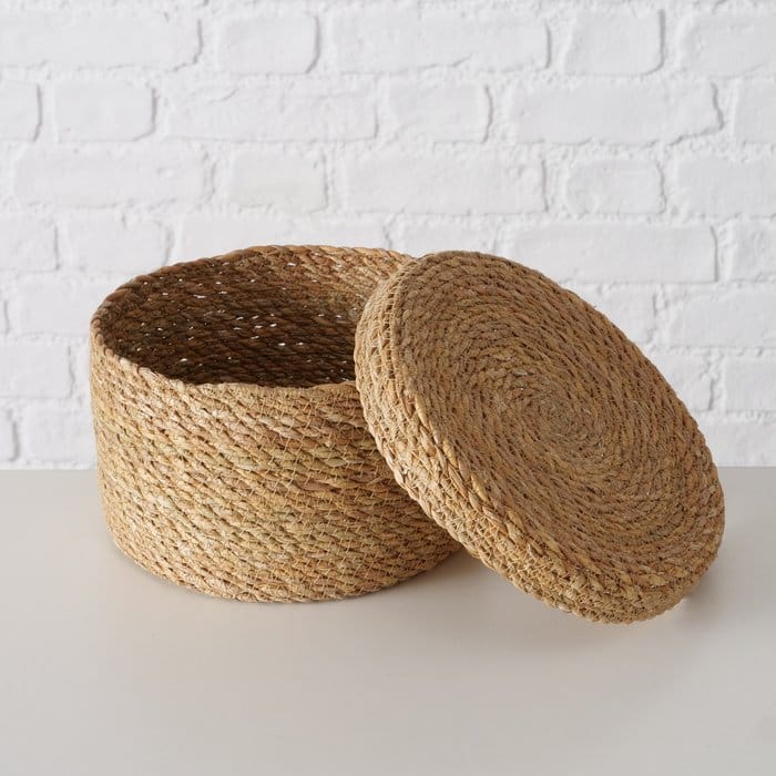 Boltze – Set van 3 – Zeegrasmanden – Sophy – Met deksel – 10×15 – 12×20 – 14x25cm