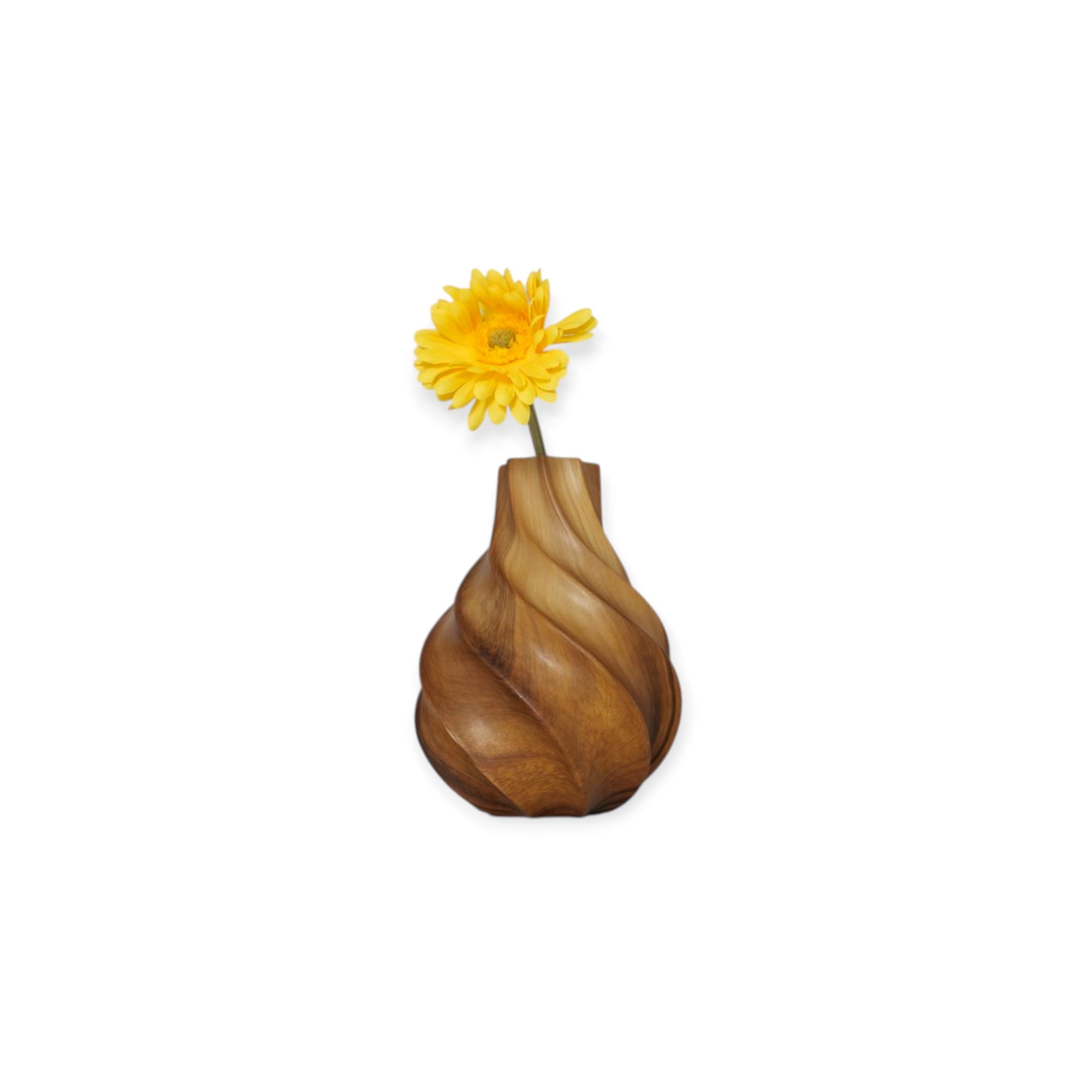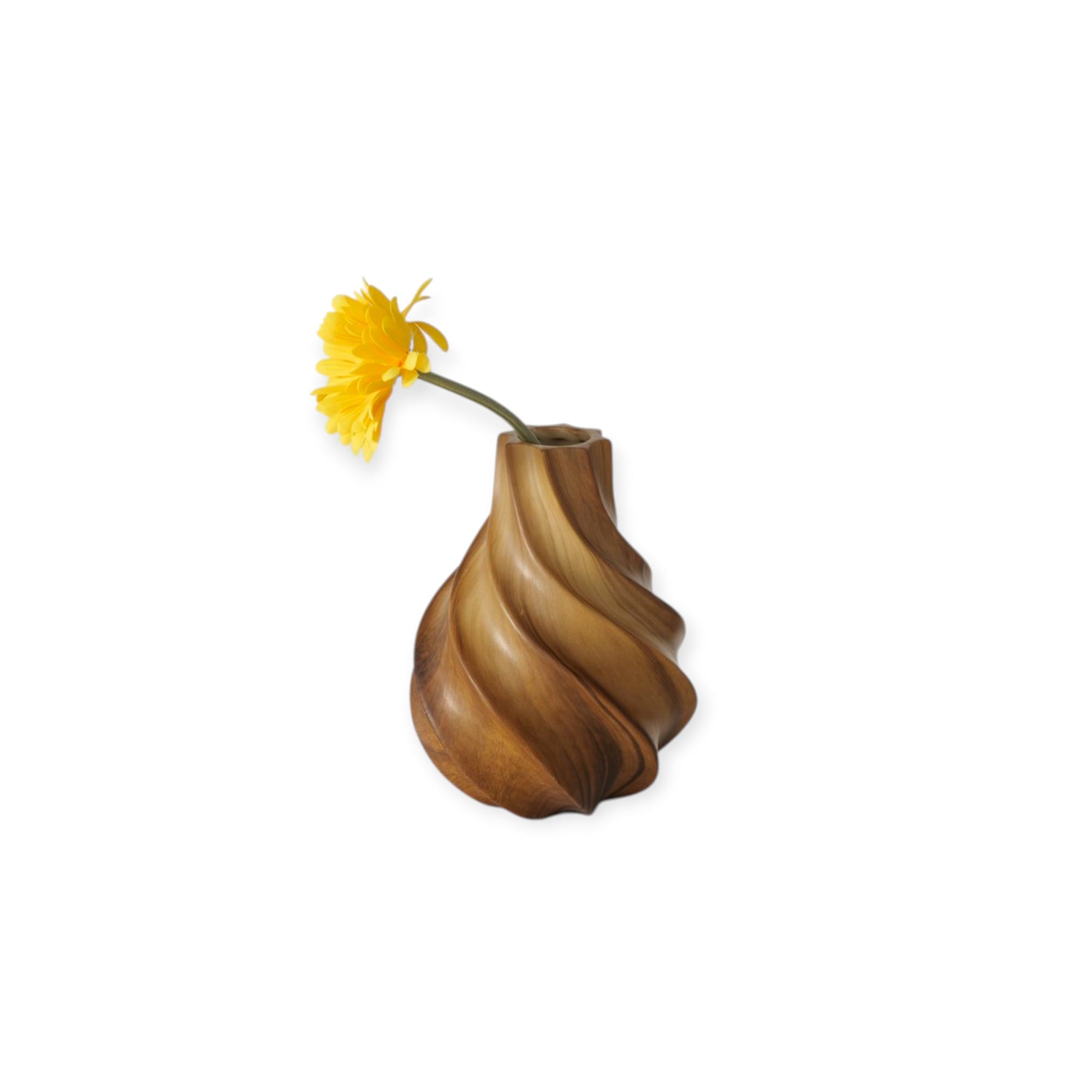 De vaas combineert de charme van hout met de duurzaamheid van keramiek. Het bijzondere reliëf en de vloeiende vormen zorgen voor een moderne, luxe uitstraling die past in zowel een landelijk als een modern interieur.