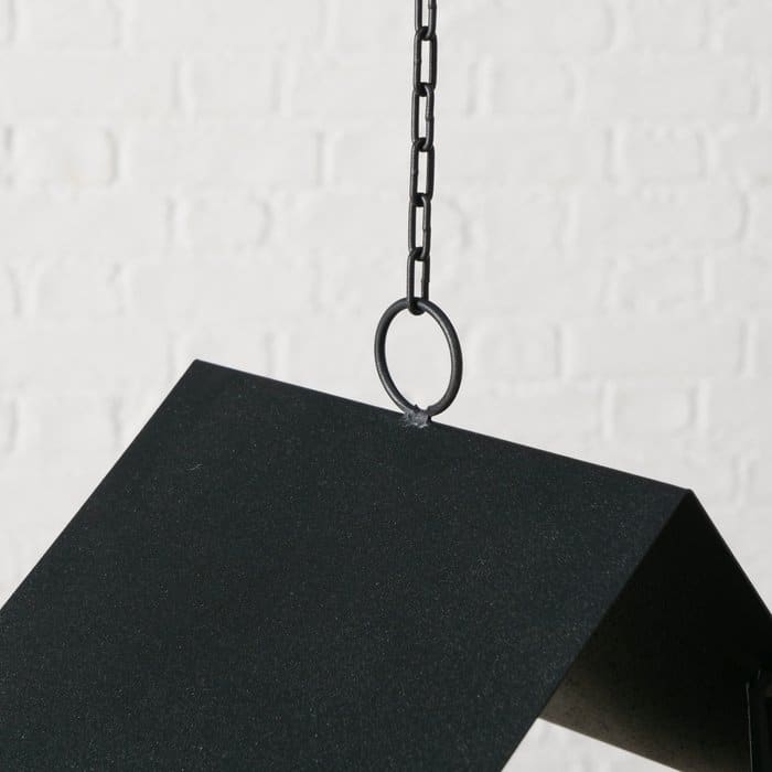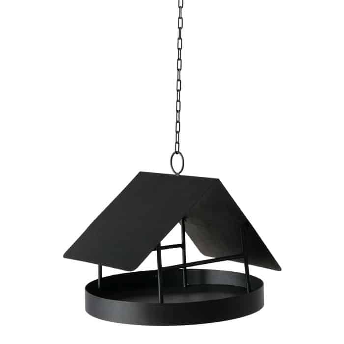 Het vogelvoederstation is ontworpen in een strak, minimalistisch design met ophangketting en in het huisje een handige ophanghaak voor het ophangen van vetbollen, pindaslingers of voederzakjes.