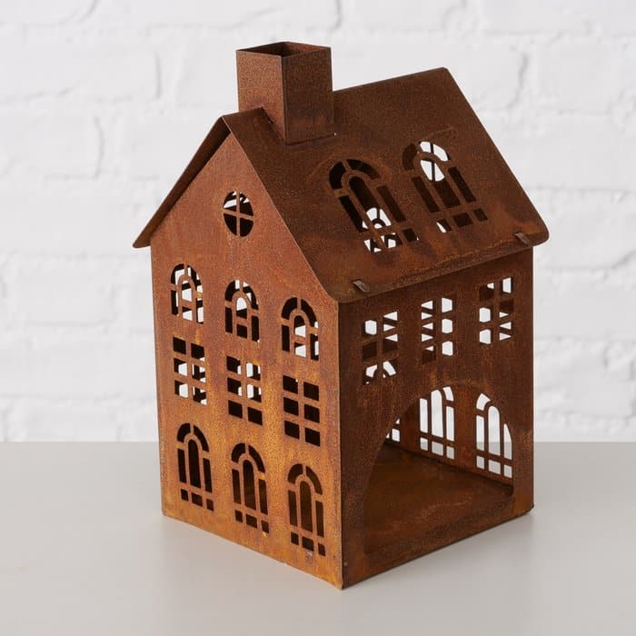 Boltze – Waxine Huisjes – Huisjes – Lantaarn huisjes – set van 2 – Metaal – Roest – 20 en 23cm hoog
