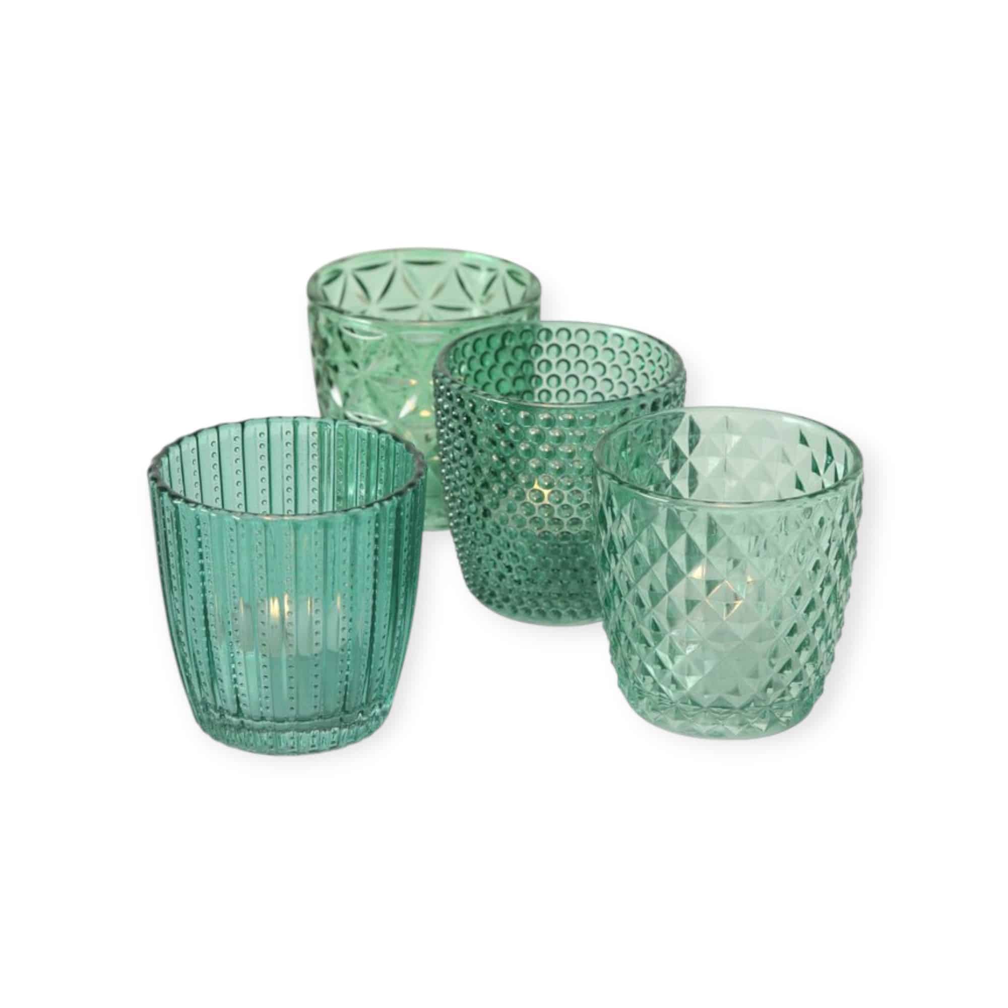 Boltze – Waxinelichthouders – Theelichthouders – Set van 4 – Glas – Groen tinten