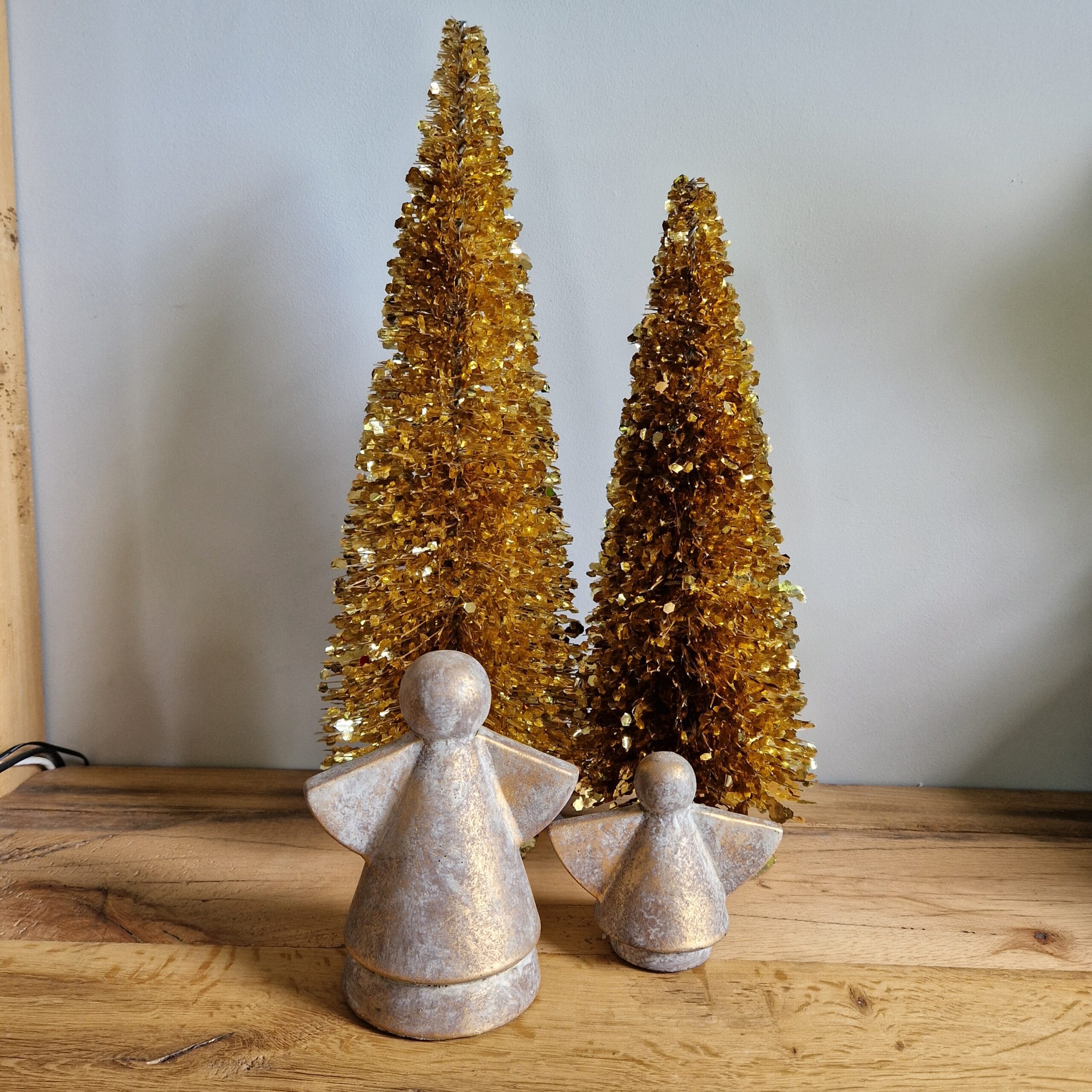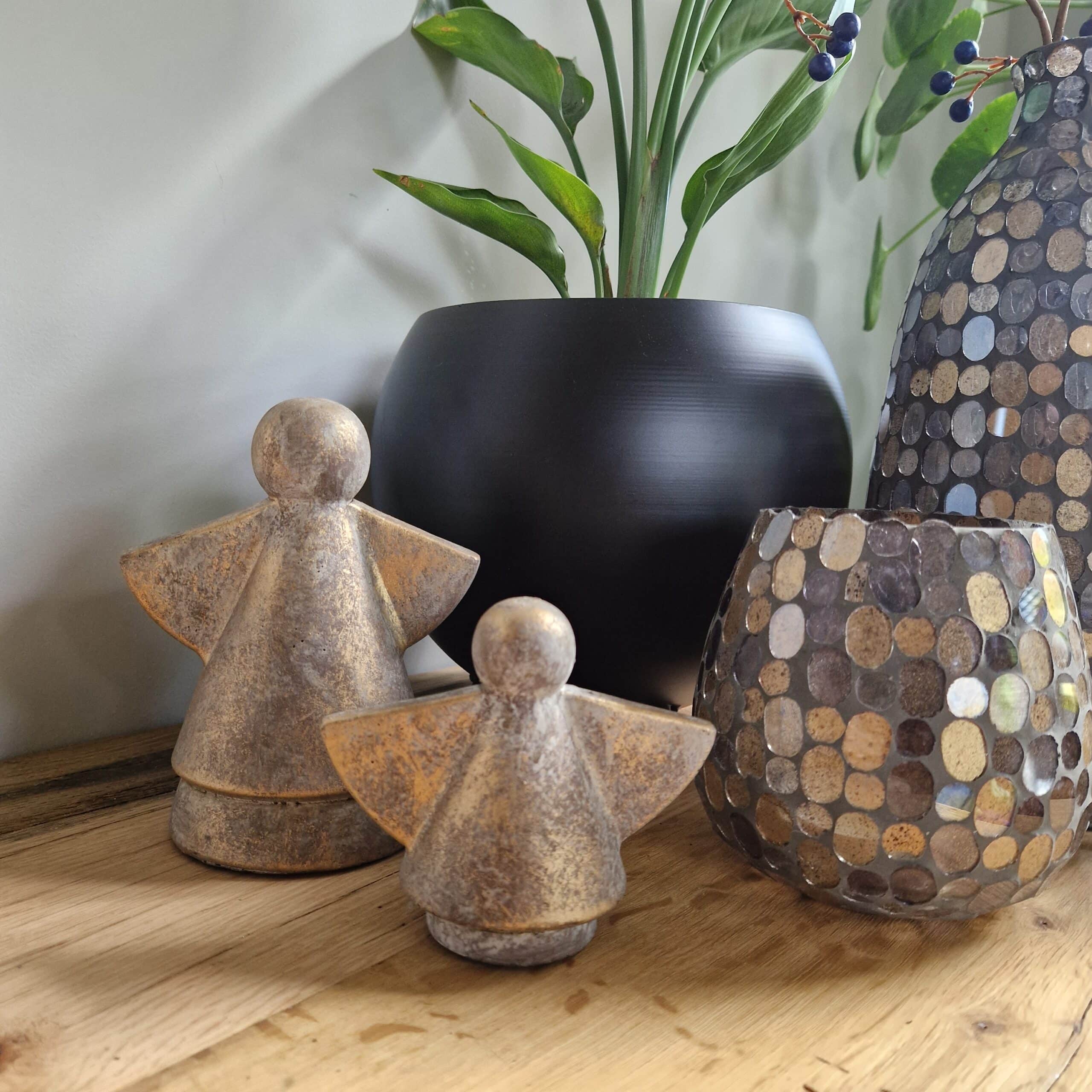 Set van 2 stoere engelen van beton – Robuust Goud – 13x10x16 en 13x7x11 – Trendy ( Kerst )decoratie