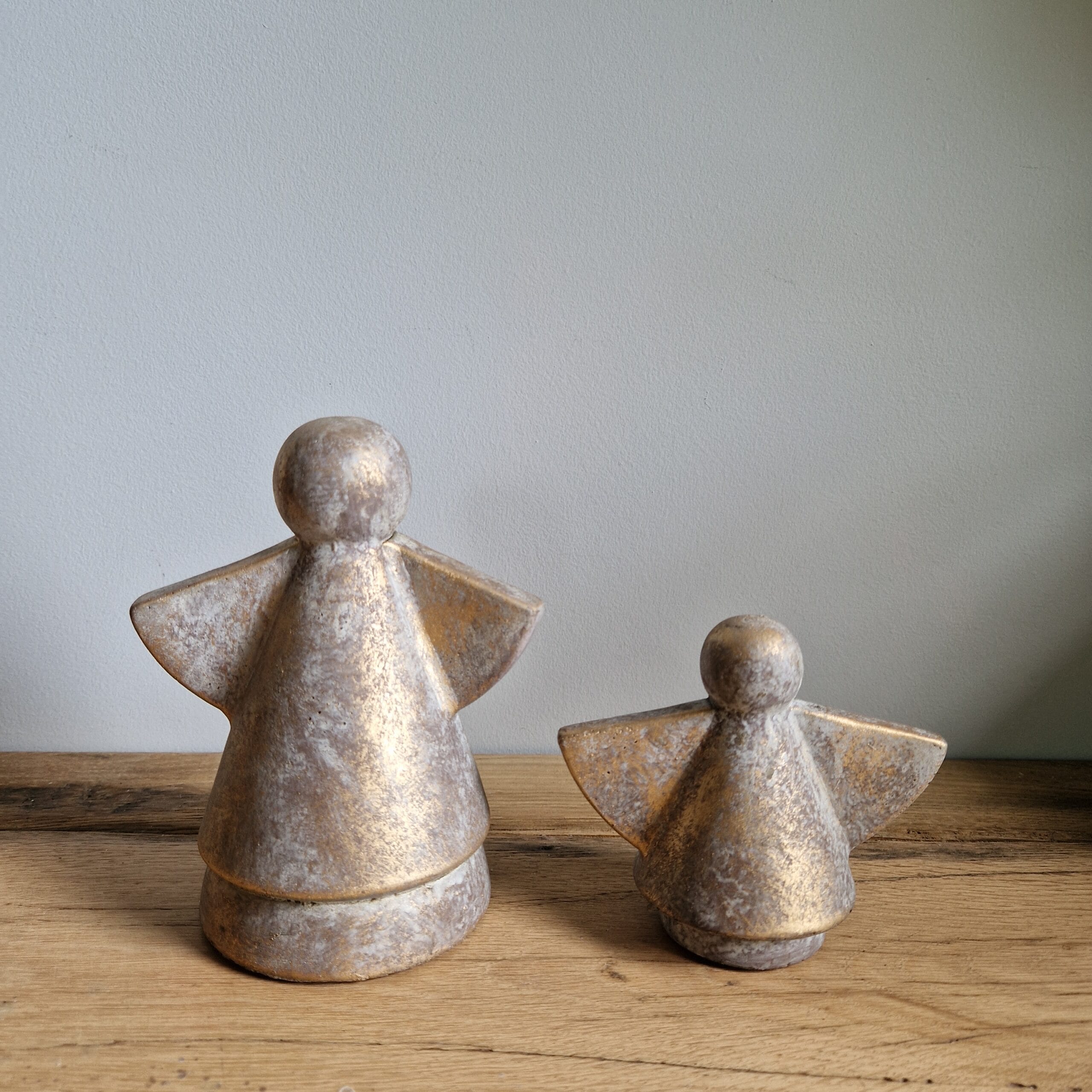 Daan Kromhout – Engel – Angel – Set van 2 – Beton – Beelden – Robuust Goudkleur – 16 en 11cm hoog