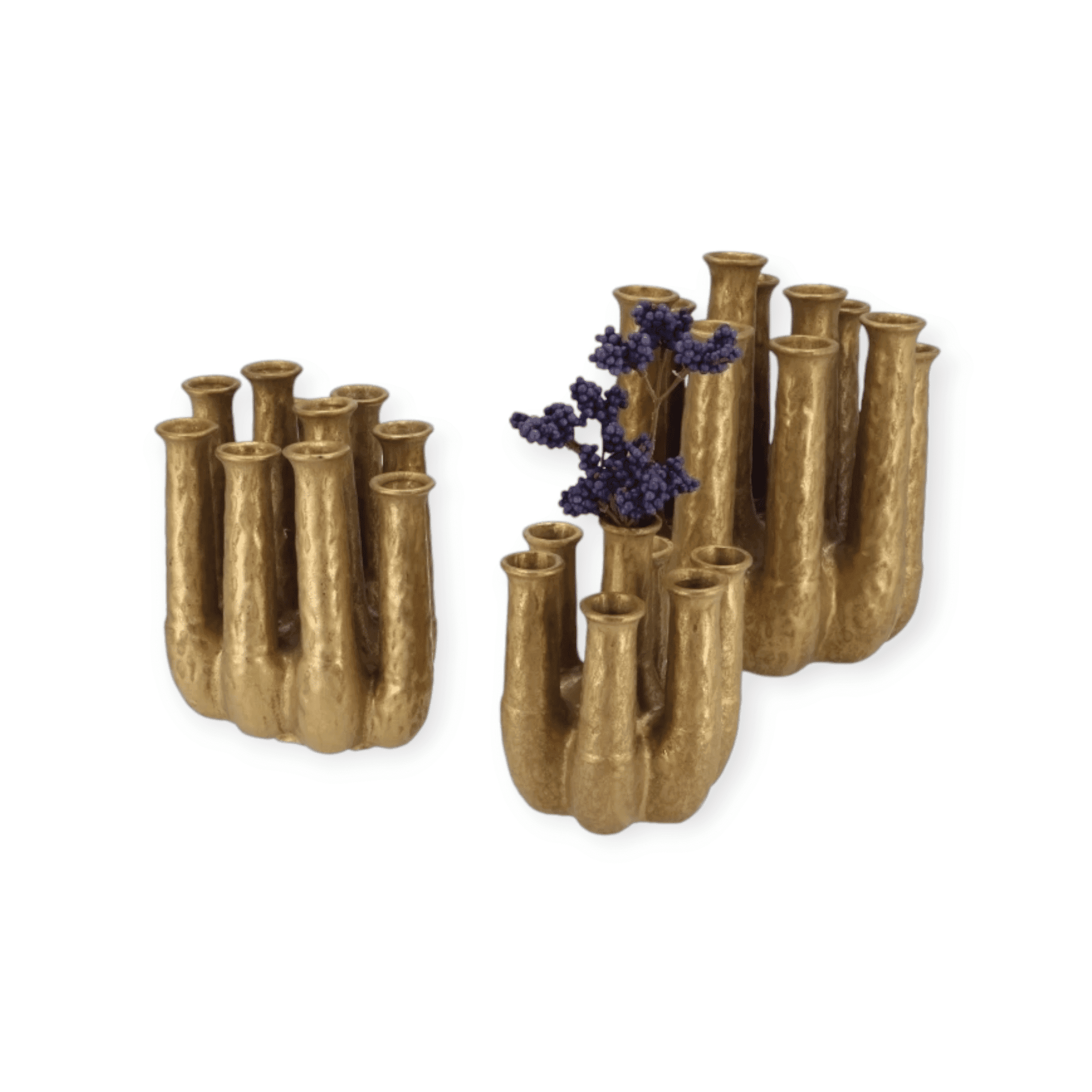 Geef je interieur een modern accent met de Inga Jahra Tube Vaas in de trendkleur Goud. Deze unieke vaas met 7 smalle bloemenhalsjes (tubes) zorgt voor een speelse manier om bloemen te presenteren.