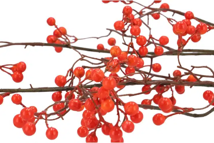 De levendige rode bessen zorgen voor een warme en feestelijke uitstraling. Ideaal voor de herfst- en wintermaanden, maar ook prachtig als kleurrijke blikvanger het hele jaar door. Dankzij de duurzame materialen geniet je jarenlang van deze onderhoudsvrije tak.
