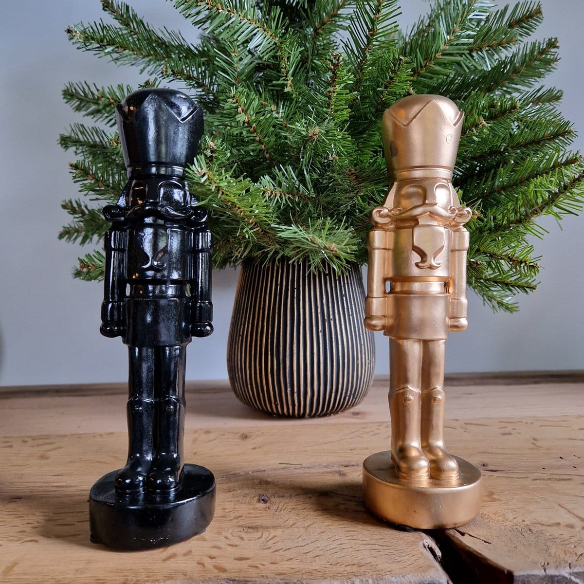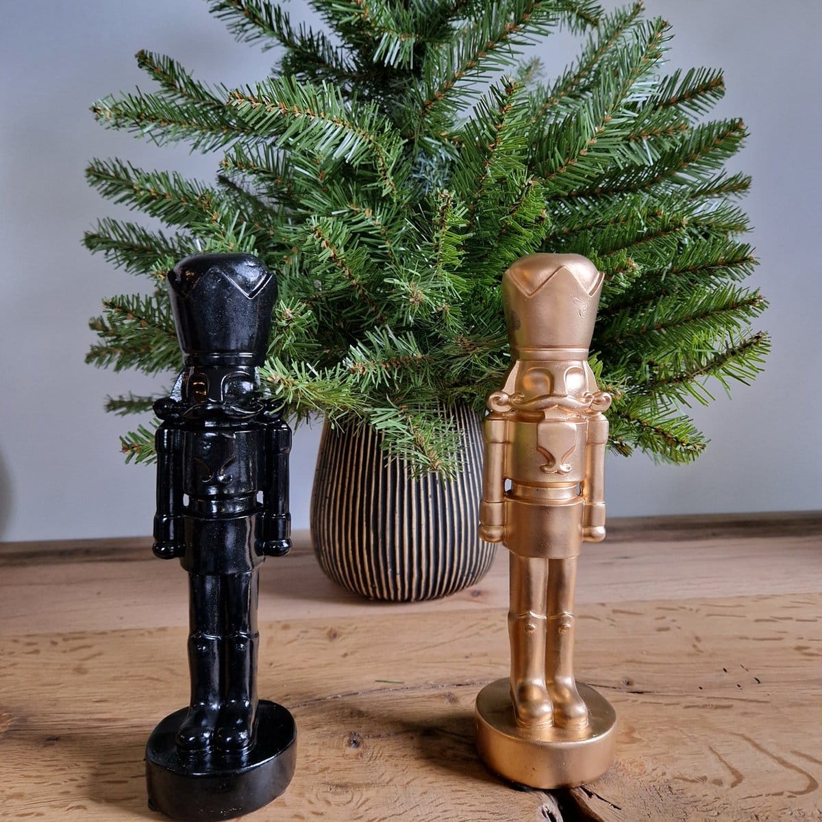 Het klassieke Notenkraker-ontwerp in trendy goud en zwart maakt deze beeldjes perfect voor zowel traditionele als moderne kerstdecoraties. Met hun luxe uitstraling passen ze in elk interieur, van minimalistisch tot extravagant.