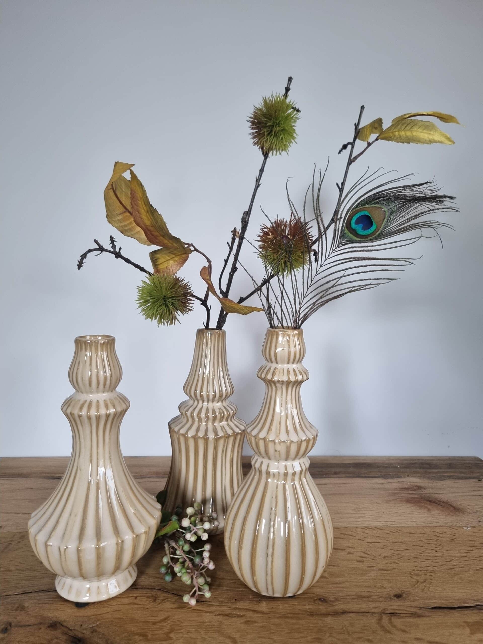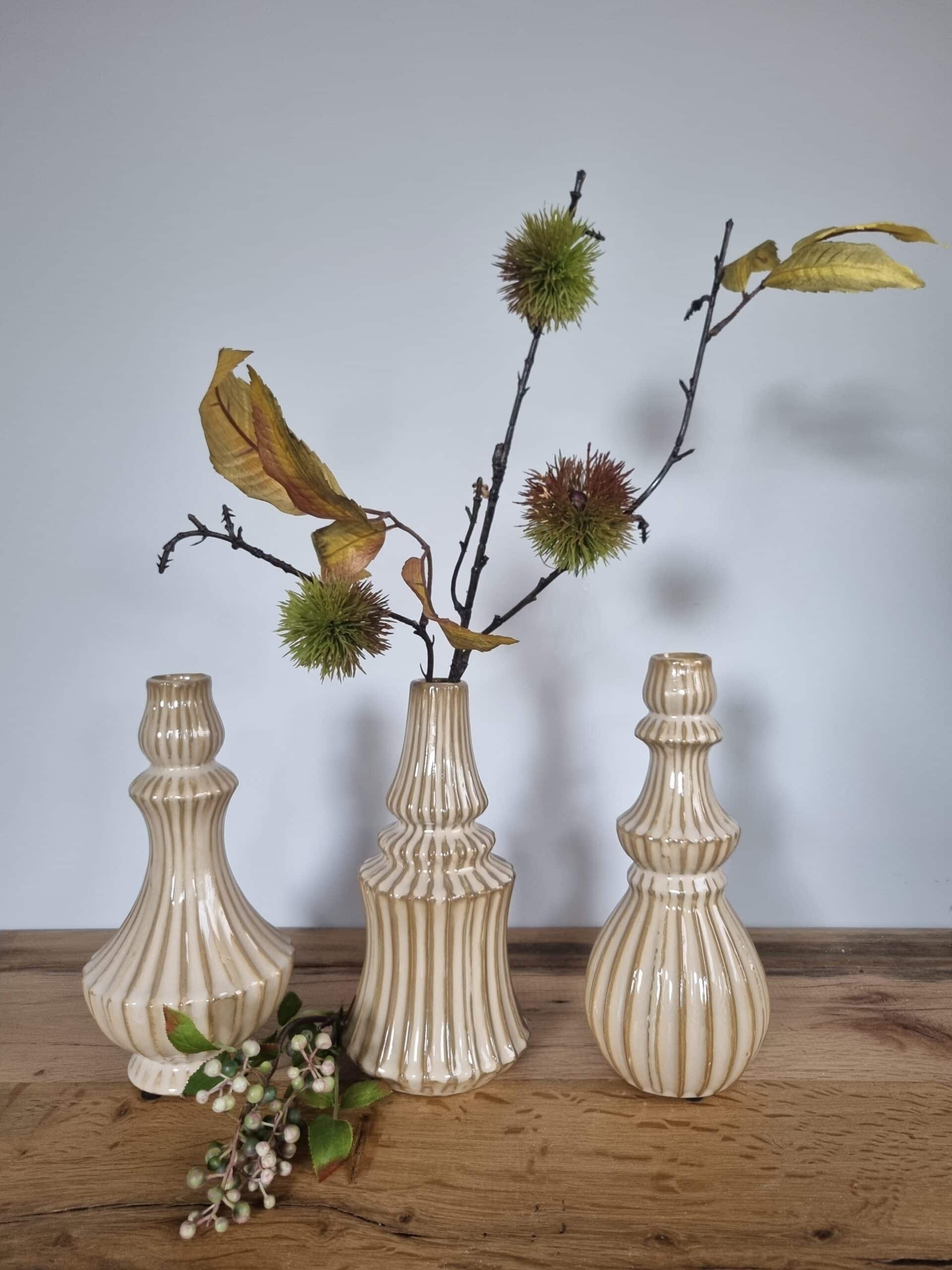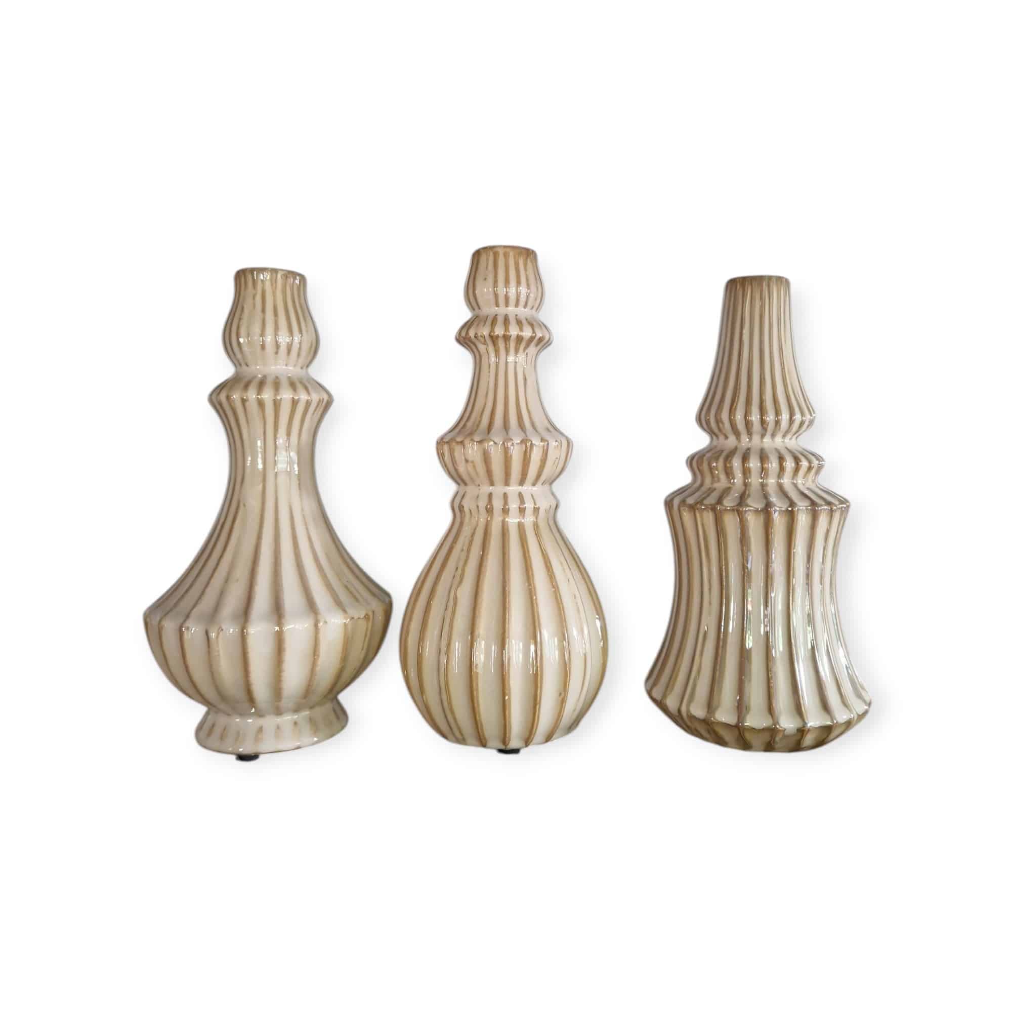 Majestic Vaas – Set van 3 – Sand kleurig Keramiek – 13×25 cm – Luxe Statement Pieces