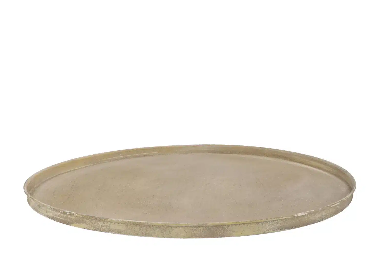 Dit mooie dienblad, uitgevoerd in een trendy robuust korrel bruin/gouden kleur, is een echte eyecatcher voor elk interieur. Met zijn afmetingen van 37cm en een subtiele hoogte van 2 cm, is het dienblad perfect geschikt voor het serveren hapjes of als decoratief item op je salontafel of dressoir.