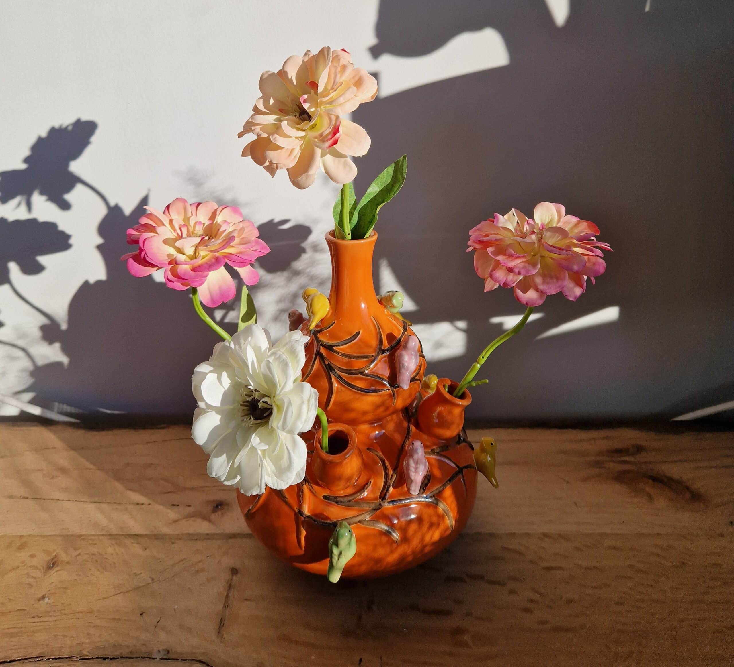 Hou je van een echt origineel interieur item dan is deze prachtige handgemaakte vaas Birds Oranje van het trendy merk Daan Kromhout echt iets voor jou!