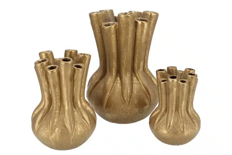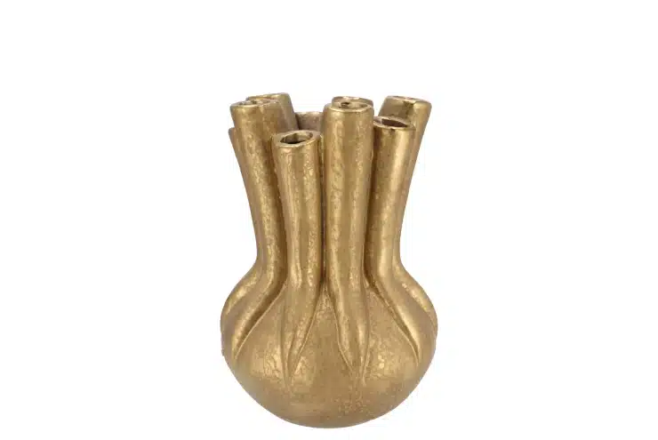 Geef je interieur een luxe uitstraling met de vaas/tulpenvaas Mika Majestic van het trendy merk DK Design.. Deze prachtige, handgemaakte bloemenvaas heeft een uniek ontwerp met 10 bloemenhalsjes, waardoor je op een speelse manier bloemen kunt schikken. Uitgevoerd in de trendy kleur robuust goud brengt deze vaas een klassiek tintje in zowel moderne als traditionele interieurs. Zelfs zonder bloemen is dit een echte eyecatcher!
