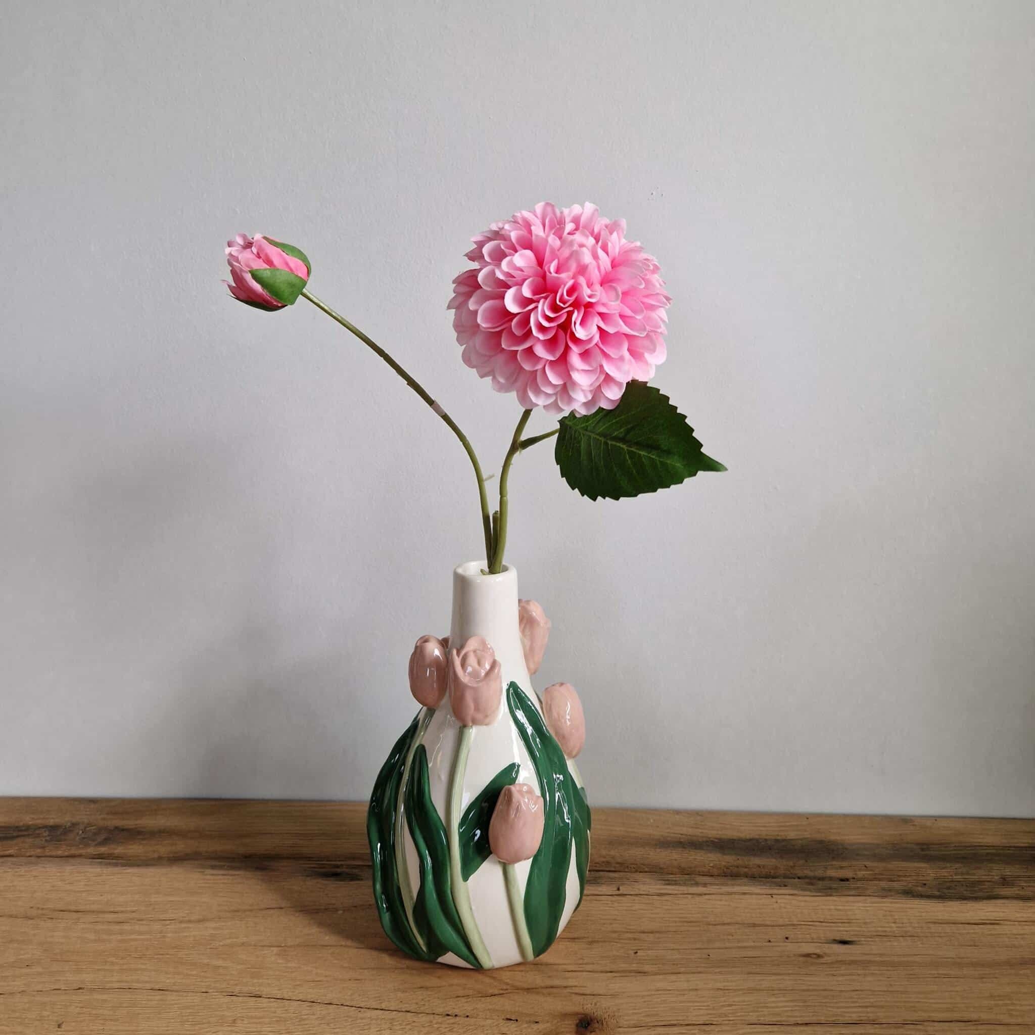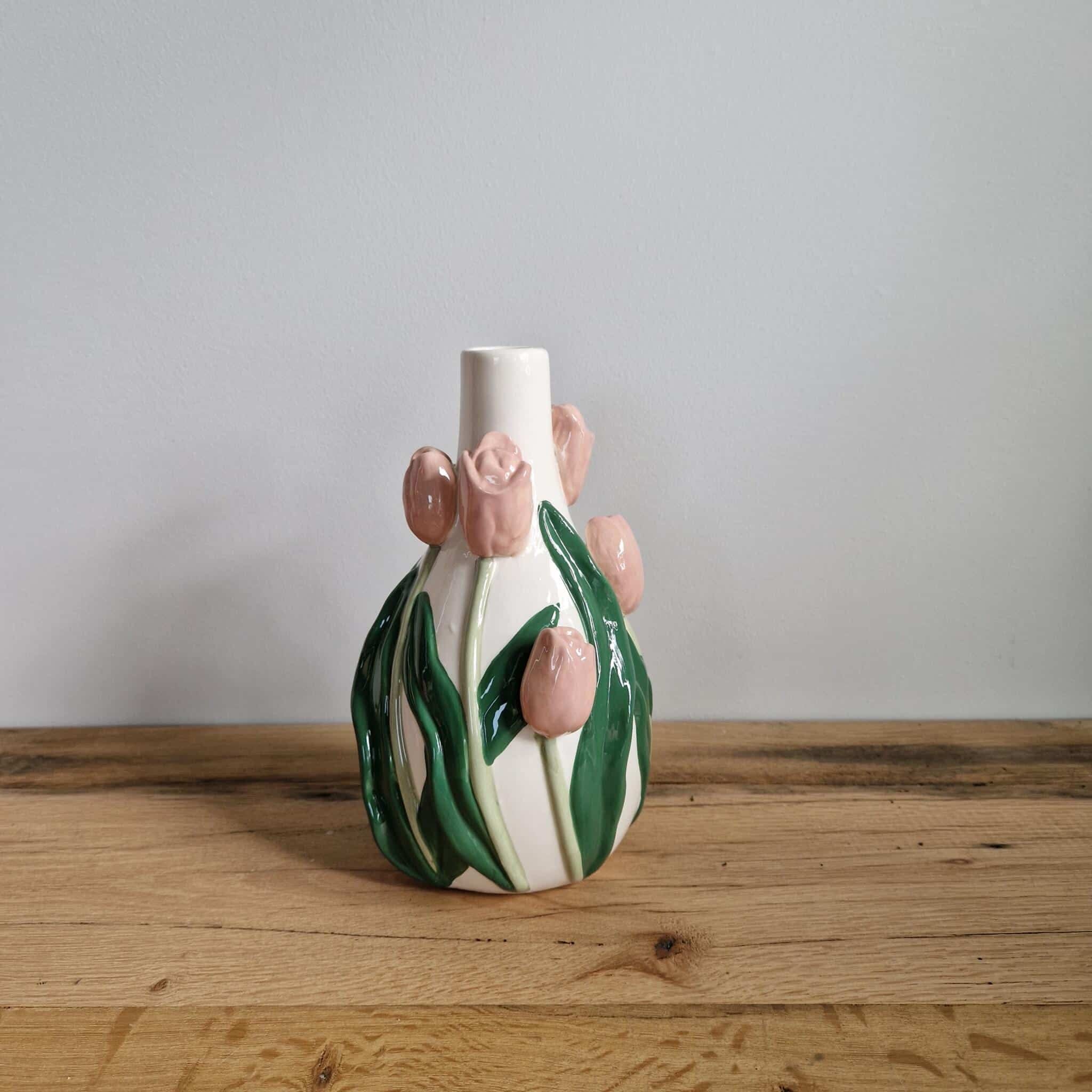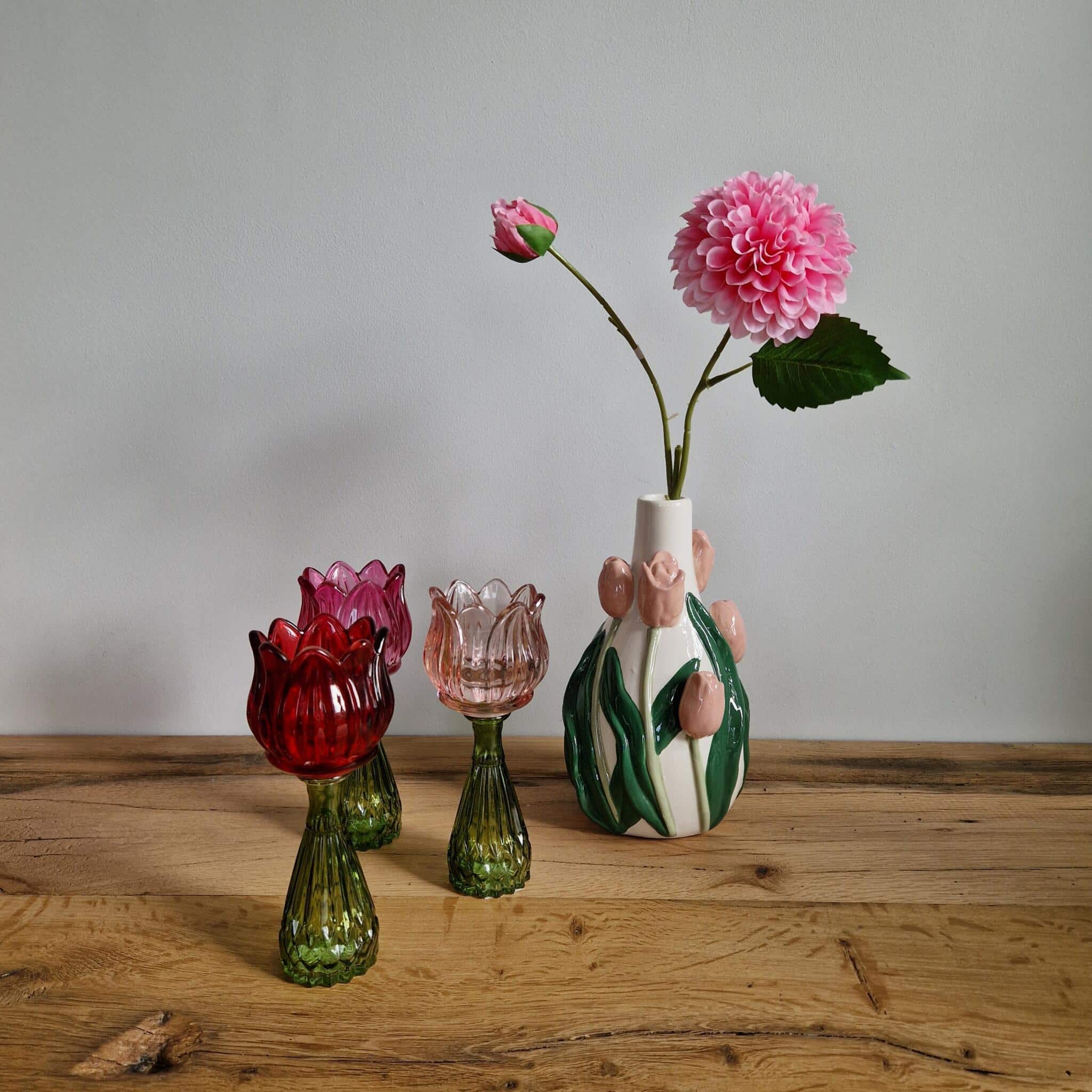 Daan Kromhout - Vaas - Bloemenvaas - Tulpen - Dutch - 14x13x22 - Keramiek - Midden roze aantal