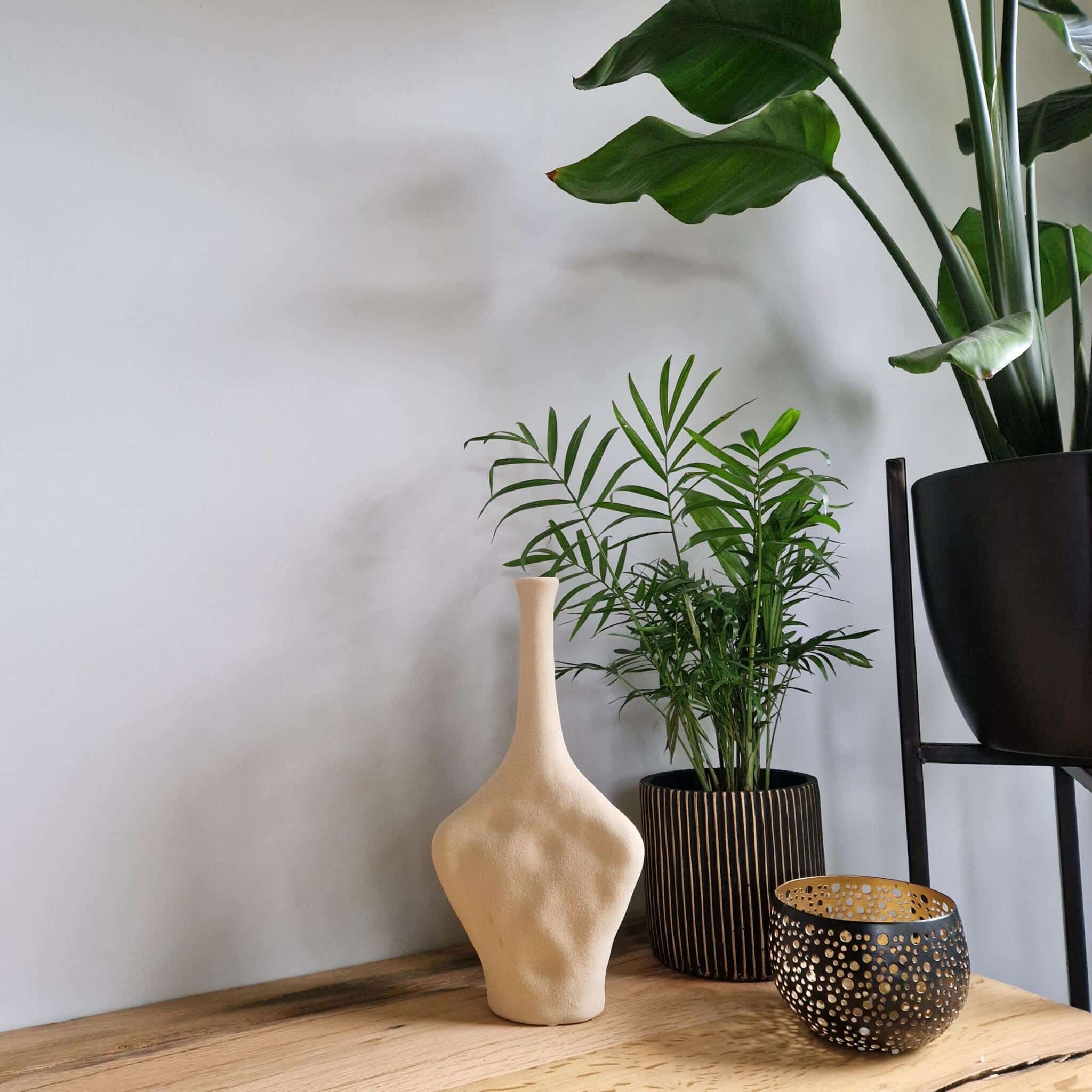 Geef je interieur een eigentijdse, stijlvolle twist met deze keramieken designvaas van het trendy merk Daan Kromhout. Deze unieke vaas, met zijn eclectische vorm en warme aardetint, brengt direct sfeer in elke ruimte. In de kleur zand past hij perfect in moderne en boho-invloeden, of voeg juist contrast toe in een minimalistisch interieur.