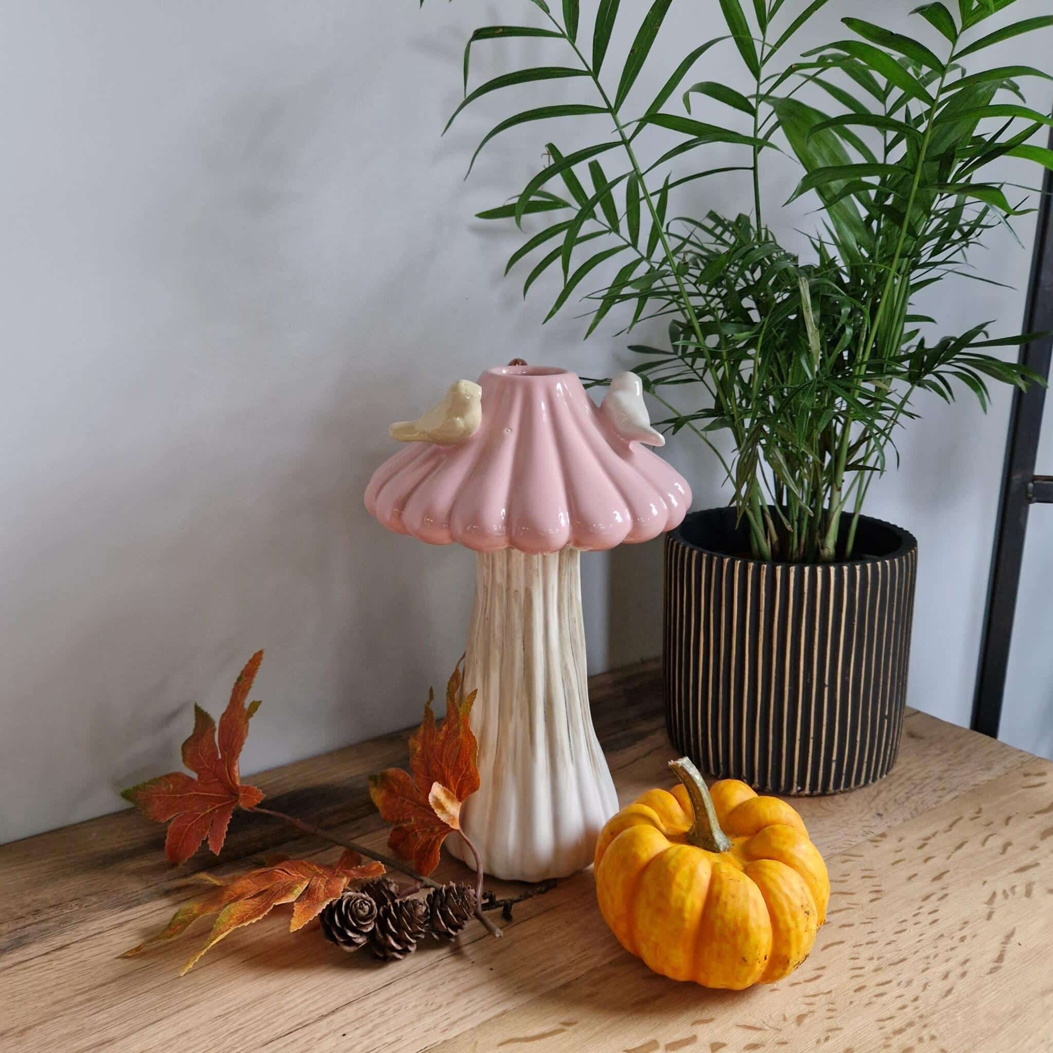 Keramieken Paddenstoel Vaas met Vogeltjes van Daan Kromhout – Trendy Eyecatcher voor de Herfst/Wintermaanden