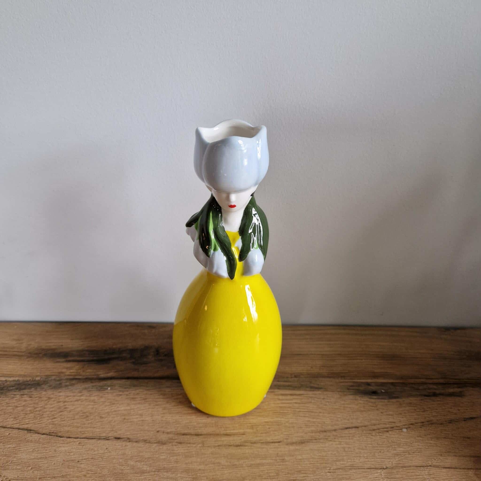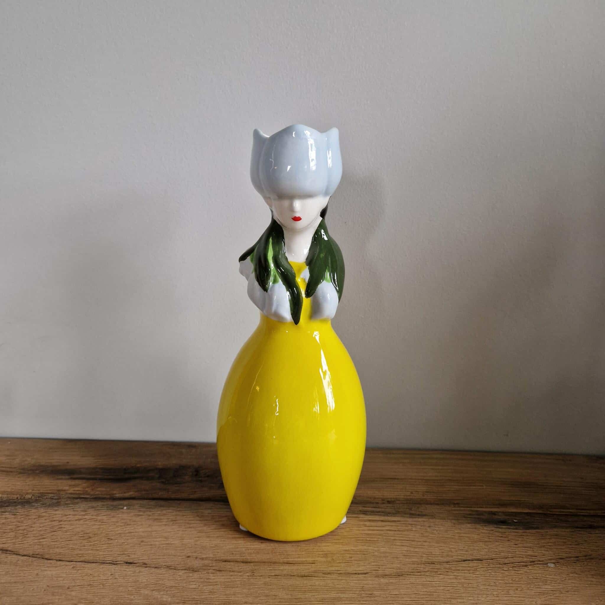 Daan Kromhout – Vaas – Tulpenvaas – Lucy Dutch Woman – Geel, Lichtblauw – Keramiek – 22 cm