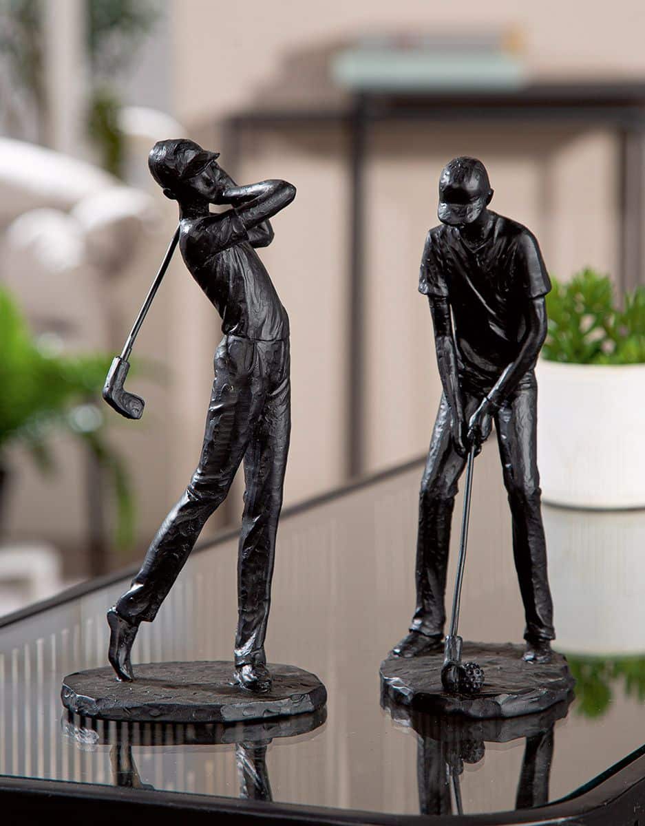 Dit beeld straalt passie voor golf uit en is perfect als cadeau voor een golfer of als decoratie in een clubhuis, man cave of sportkamer. De elegante houding en verfijnde details maken het tot een echte blikvanger!