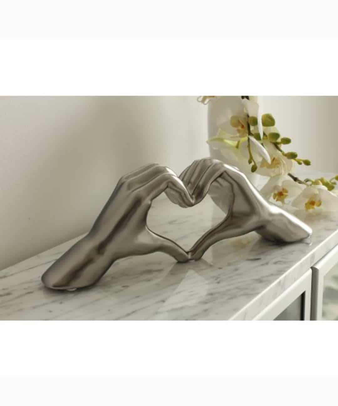 Gilde Handwerk Beeld Sculptuur Heart Sign Hands Mat zilver Keramiek