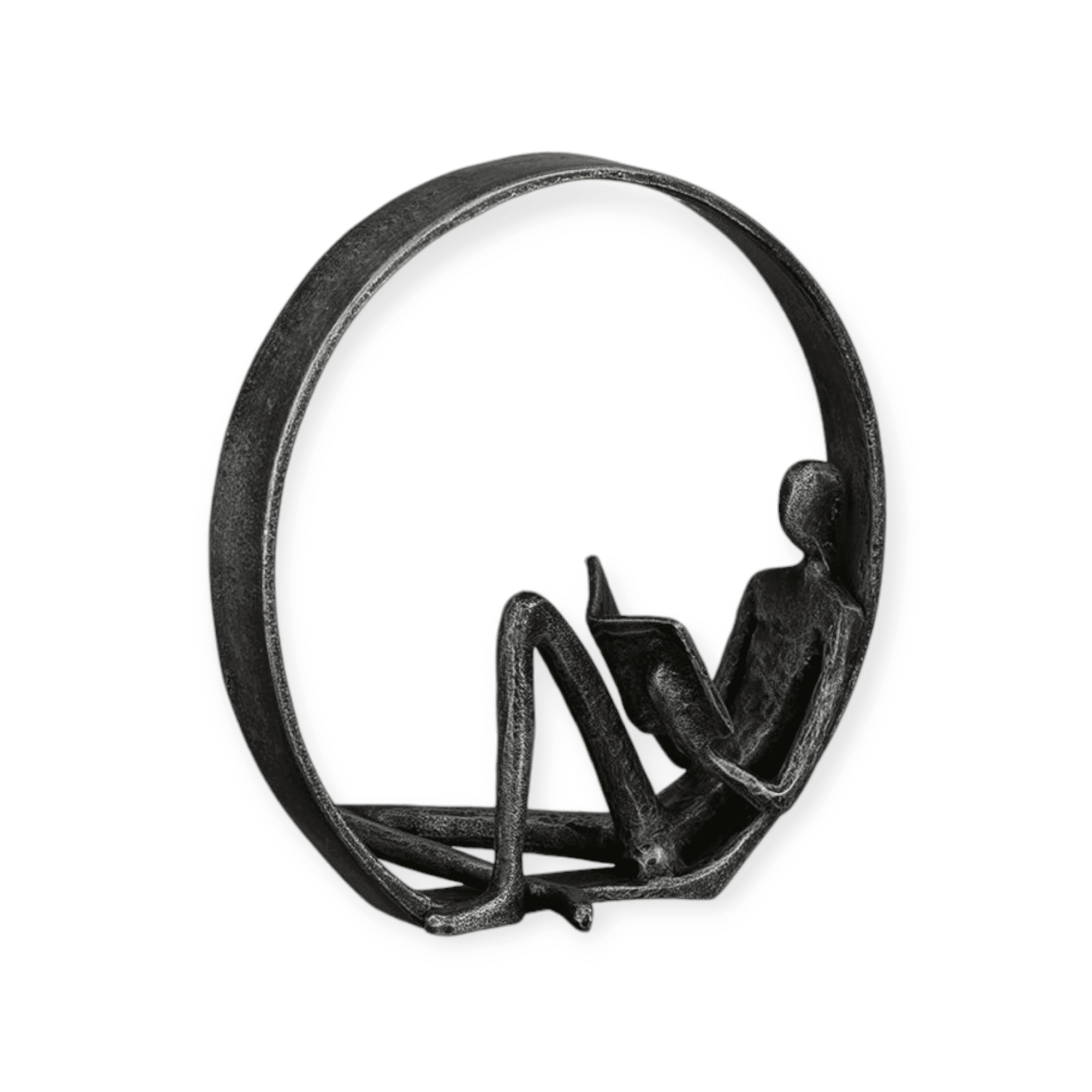 Gemaakt van hoogwaardig metaal en afgewerkt in een tijdloze grijs-zwarte kleur, is dit beeldje een ware blikvanger in elke ruimte. Met afmetingen van 9x17x18 cm is het ideaal voor op een boekenplank, bijzettafel, salontafel of bureau. Het compacte formaat maakt het eenvoudig om dit kunstwerk te integreren in elk interieur, van modern tot klassiek.
