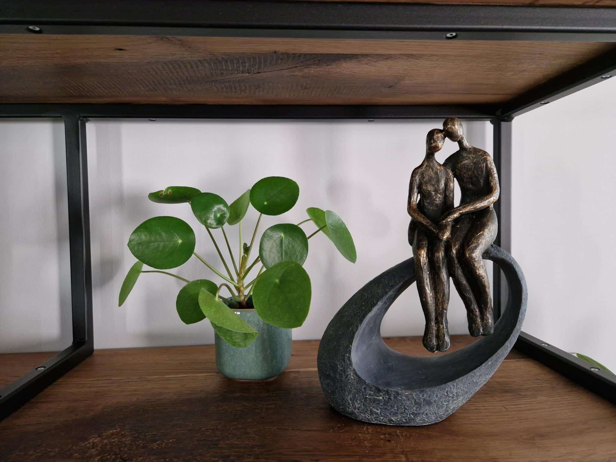 Voeg een vleugje moderne elegantie en betekenisvolle kunst toe aan je interieur met het polyresin beeld ‘Moment‘ van het trendy merk Gilde Handwerk. Dit unieke kunstwerk toont een man en vrouw in een innige omhelzing, zittend op een ovalen grijze cirkel. Het beeld heeft een afmeting van 9x19x27 cm en is een perfecte weergave van liefde en verbondenheid.