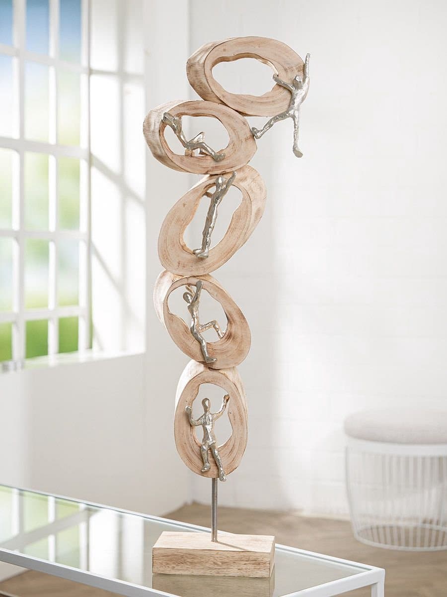 Gilde Handwerk – Beeld – Sculptuur – Op weg naar de top – 77x23x9cm – Mangohout – Aluminium