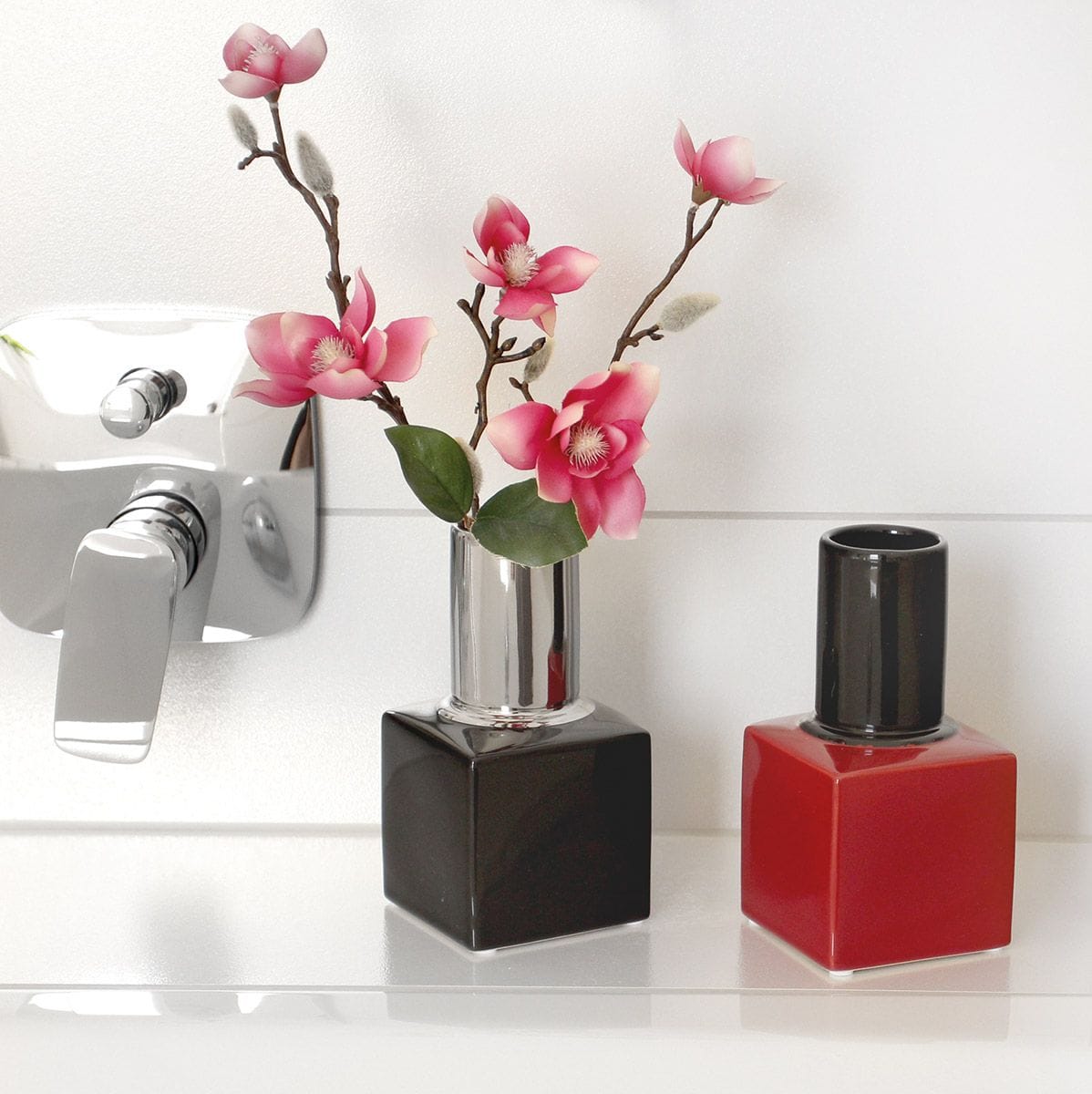 Unieke Keramieken Vaas in de Vorm van een Nagellakflesje – Rood/Zwart – Gilde Handwerk (9,5×18 cm)