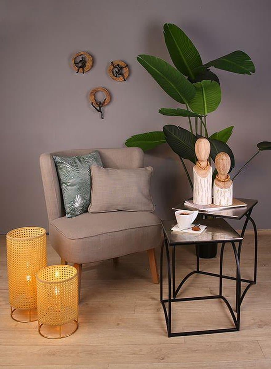 Gek op design en een origineel interieuritem? Dan is deze set van 3 muur decoratie beelden van hout en metaal echt iets voor jou.