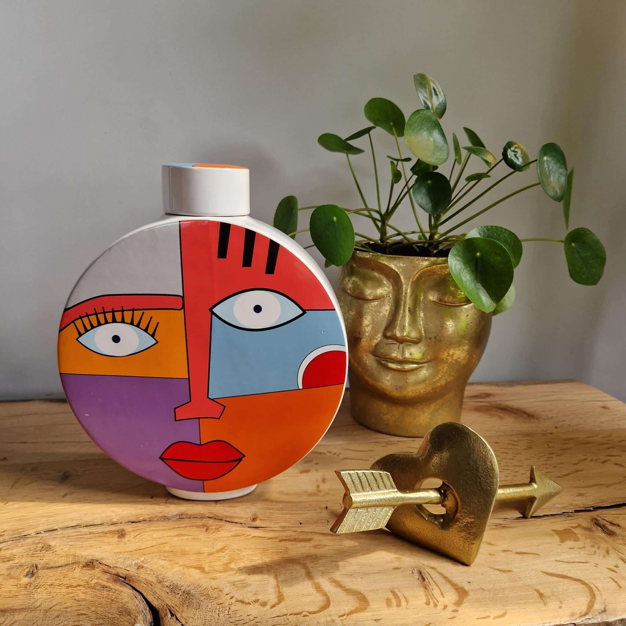 Gilde Handwerk – Vaas – Graphic Face -Grafisch gezicht motief – Multicolour – 7.5x24x29.5cm