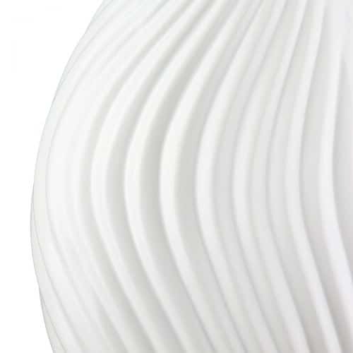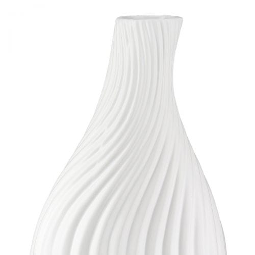 De vaas heeft een vloeiend, golvend design dat geïnspireerd is op natuurlijke vormen. Het stralende matwitte keramiek straalt rust en verfijning uit, perfect voor een serene woonstijl of als contrast in een kleurrijk interieur.