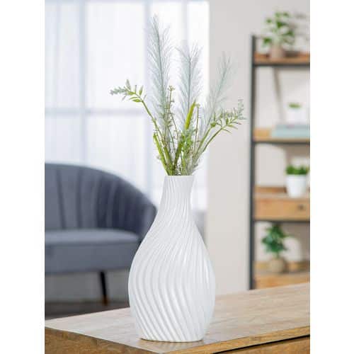 Of je nu kiest voor een paar decoratieve takken, pampasgras of een minimalistisch boeket – deze vaas komt altijd tot zijn recht. Ook zonder inhoud is het een prachtig decoratief object op tafel, in een open kast of op een dressoir.