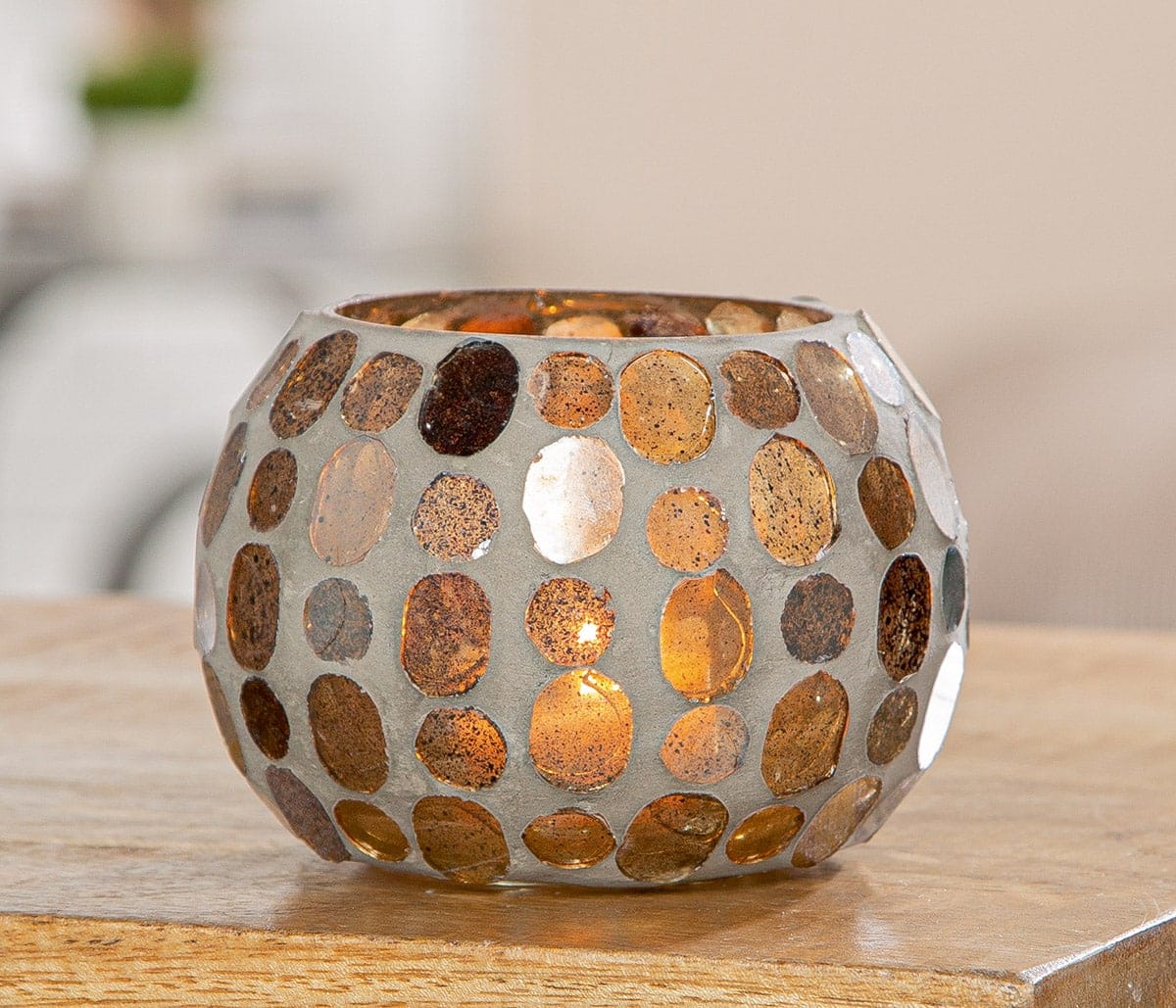 Gilde Handwerk – Waxinelicht – Windlicht – Glas – Mozaïek – Bruin/Grijs – 8x8x11cm