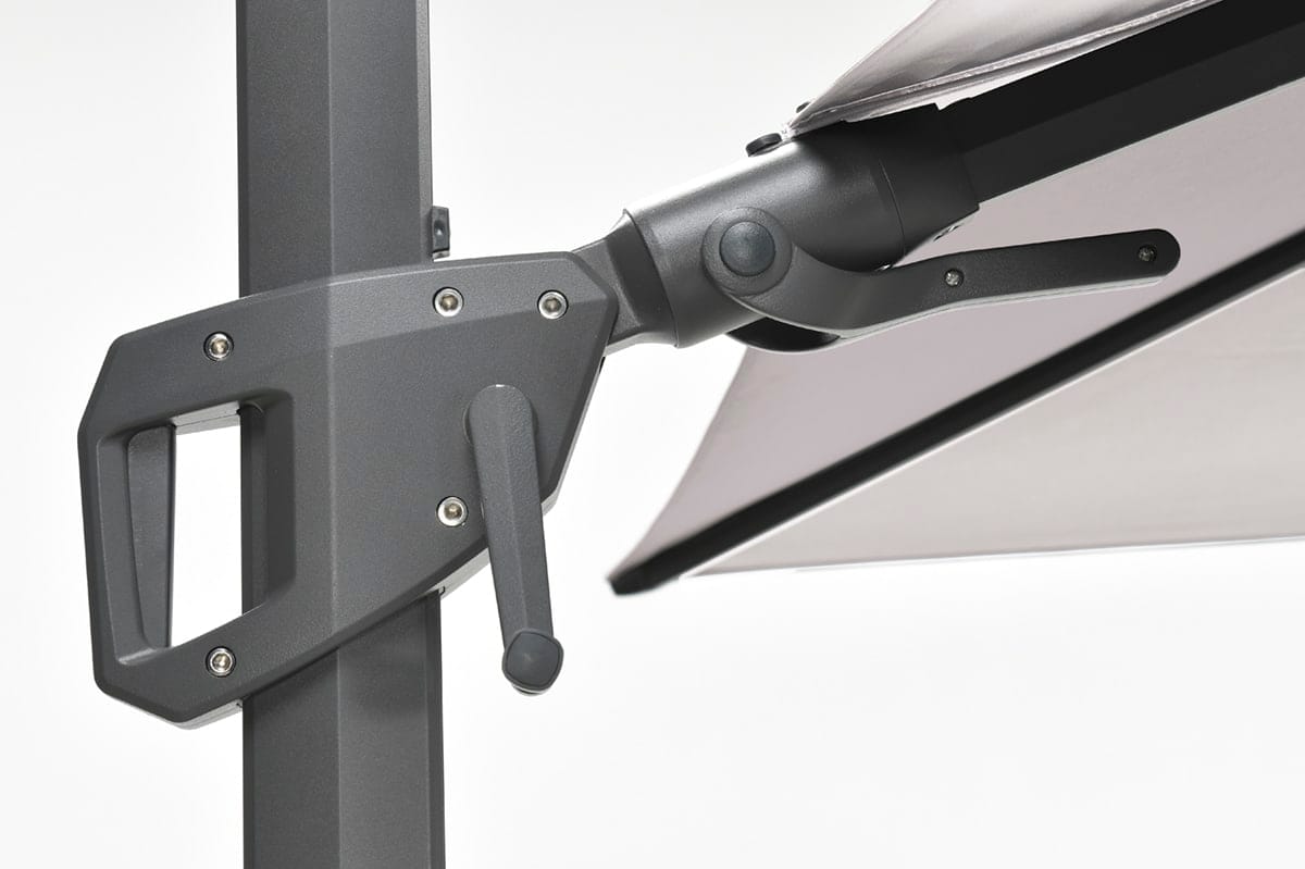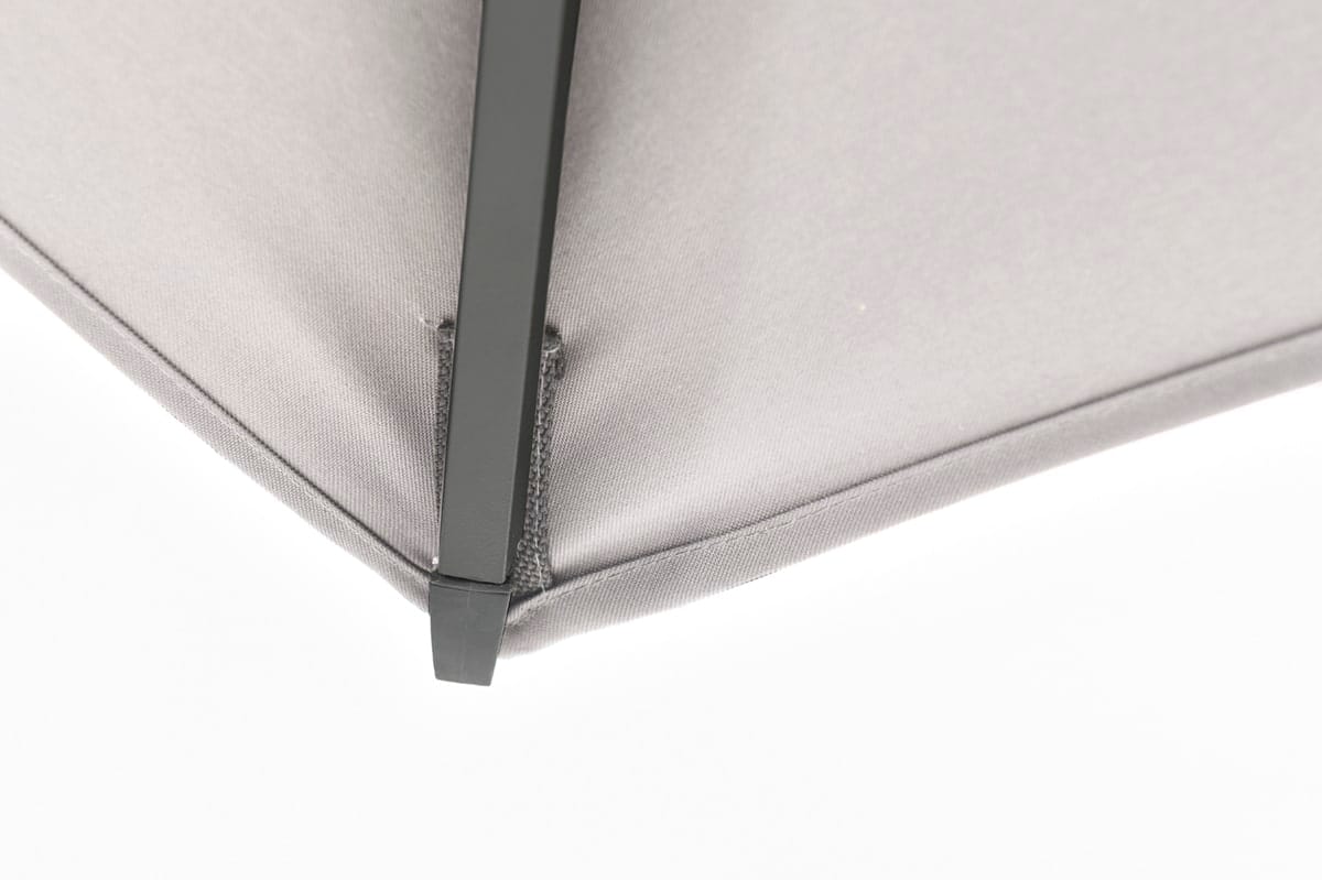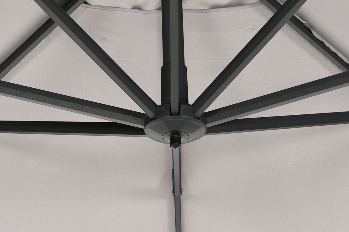 De Hawaii zweefparasol vierkant 300×300 cm carbon black / sand van Garden Impressions is een ware aanwinst voor je tuin of terras! Deze parasol is uitgevoerd in carbon black kleurig aluminium frame (Ø80 mm) en is zeer gemakkelijk te bedienen. Deze zweefparasol is eenvoudig 360 graden te draaien en het parasoldoek is verticaal en horizontaal verstelbaar. De bediening is zeer eenvoudig door het voetpedaal en schuifmechanisme met draaihendel. De parasol wordt geleverd met een 250 grams polyester parasoldoek voorzien van een PA coating. De mast is gemaakt van aluminium en heeft een poedercoating, waardoor deze optimaal beschermd is. De totale hoogte van deze parasol is 240 cm. De Hawaii parasol wordt geleverd exclusief voet, zodat u zelf kunt kiezen welke voet het beste past in uw tuin.
