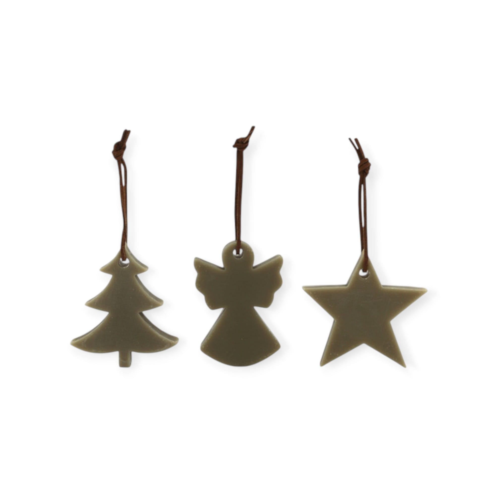 • Set van 3 wax ornaments (kerstboom, engel, ster)