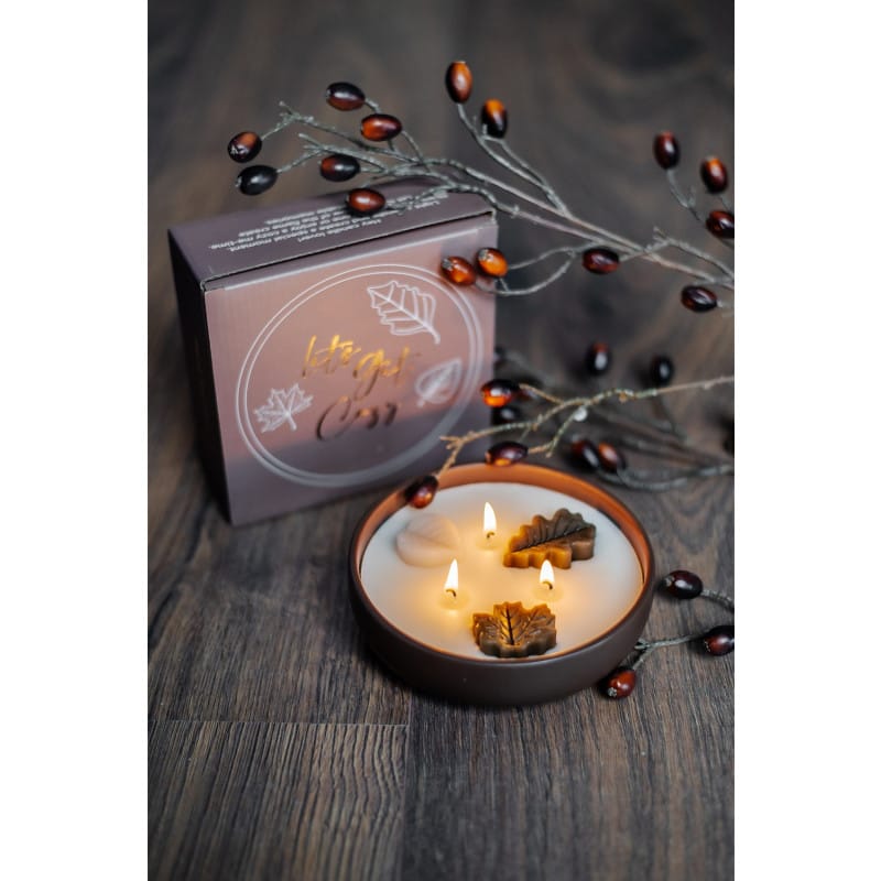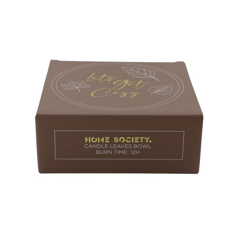 Breng direct warmte en gezelligheid in huis met deze sfeervolle wax kaars in keramieken bowl van het trendy merk Home Society. De bowl in stijlvol Bruin met heeft een afmeting van 5x15x15 cm en is gevuld met een luxe kaars met blaadjes die meerdere lonten bevat. Perfect voor de donkere wintermaanden en natuurlijk als feestelijke herfstdecoratie.