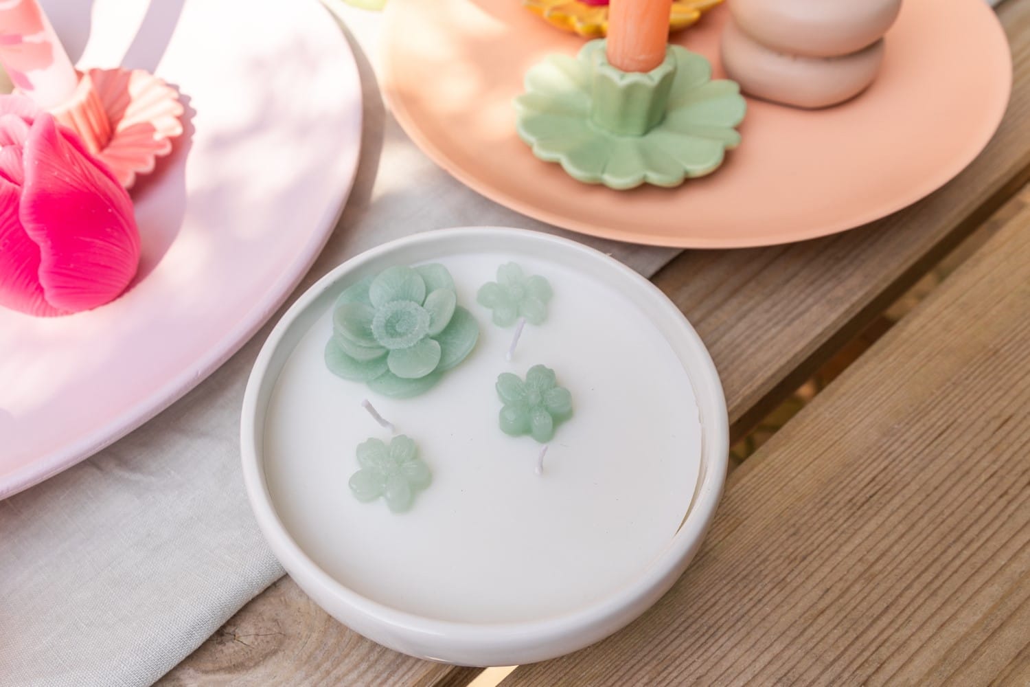 Home Society Kaars in Keramieken Schaal – Bloemenkaars – 15x15x5 cm