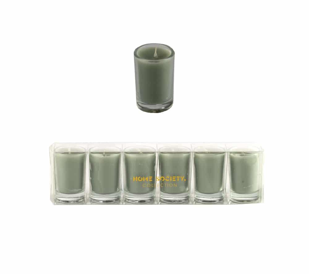 Verpakking: in deze verpakking zitten zes mini kaarsjes, elk kaarsje verpakt in een glaasje