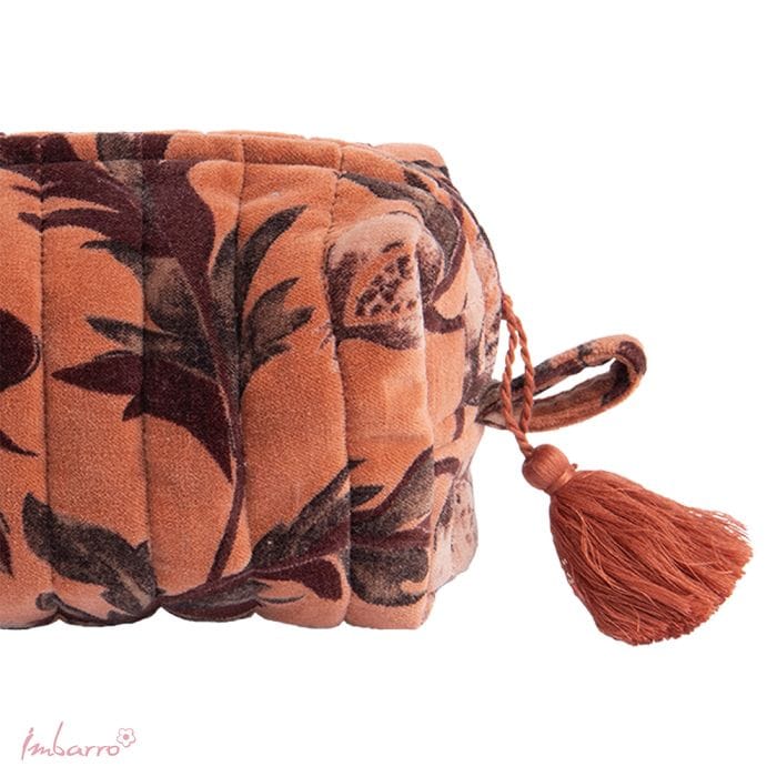 Deze vrolijke Beautybag Olivia van het hippe merk Imbarro is dé perfecte mix van stijl en functionaliteit. Gemaakt van heerlijk zachte velvet katoenstof, afgewerkt met een speels kwastje aan de rits en een handige draaglus.