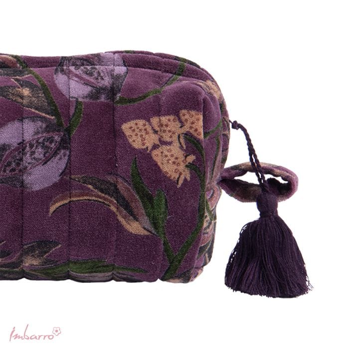 Deze vrolijke Beautybag Olivia van het hippe merk Imbarro is dé perfecte mix van stijl en functionaliteit. Gemaakt van heerlijk zachte velvet katoenstof, afgewerkt met een speels kwastje aan de rits en een handige draaglus.