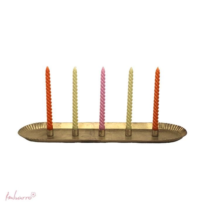 Op zoek naar een echte eyecatcher voor op tafel of dressoir? Deze handgemaakte kaarsenhouder van het trendy merk Imbarro is precies wat je zoekt! Gemaakt van robuust goudkleurig metaal en met plek voor vijf dinerkaarsen, is deze houder een stijlvolle aanvulling op elk interieur.