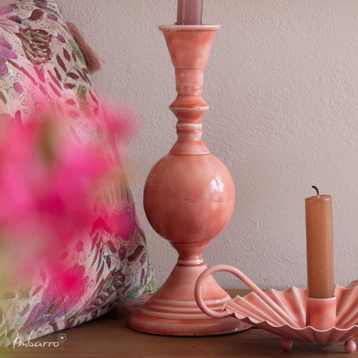 Imbarro – Kandelaar – Kaarsenhouder – Marley – Roze – Metaal – 10.5×25.5cm