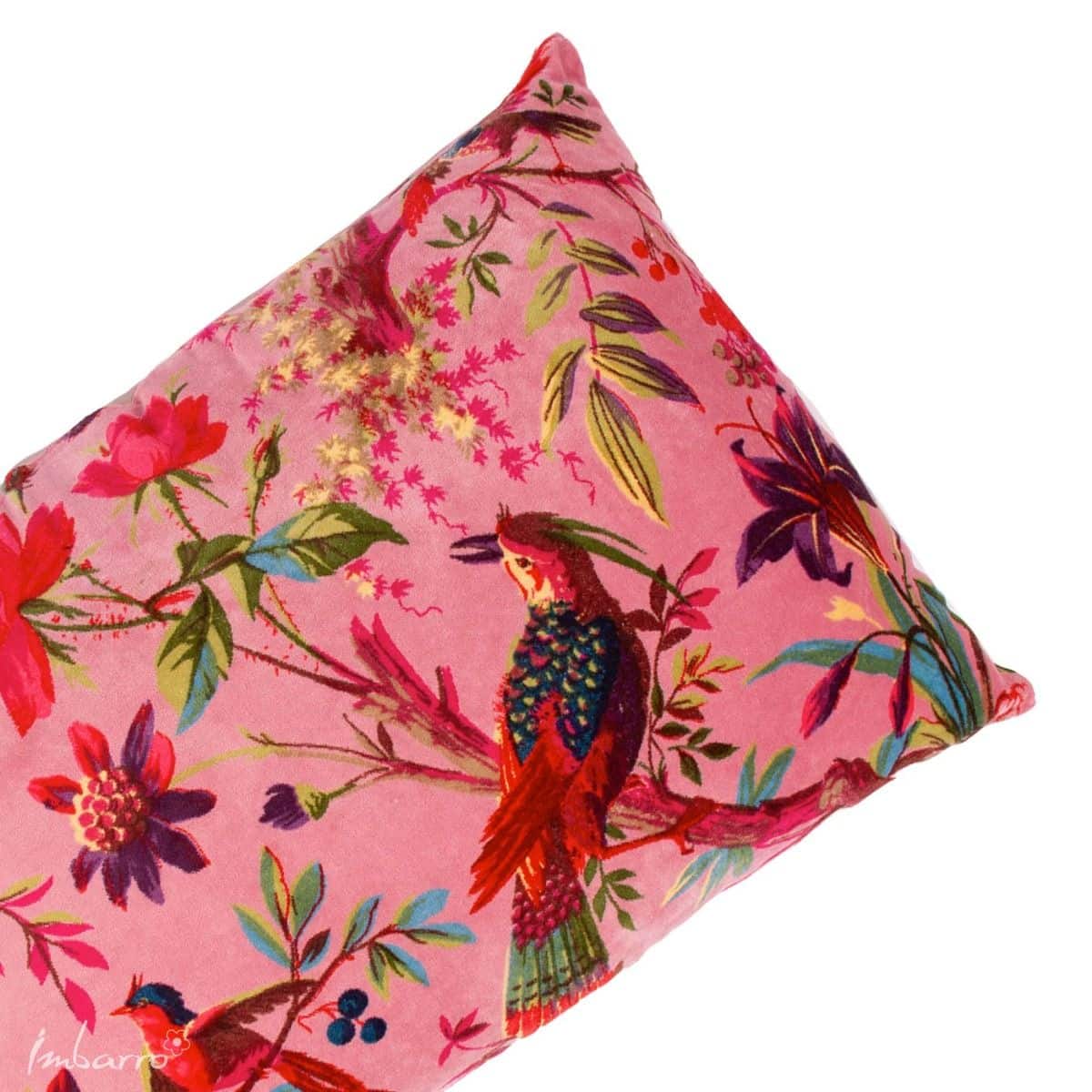 Met dit gave kussen 40/60 cm van Imbarro Home & Fashion in de hippe kleur Rose breng je warmte en sfeer in je huis. Zowel de voor- als achterkant van het velours kussen hebben dezelfde Trendy Paradise print.